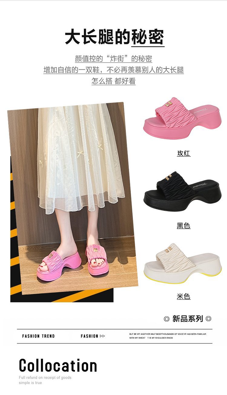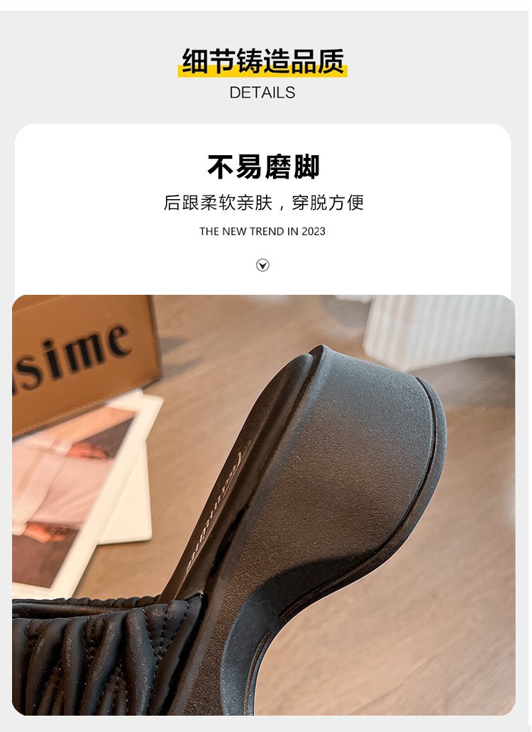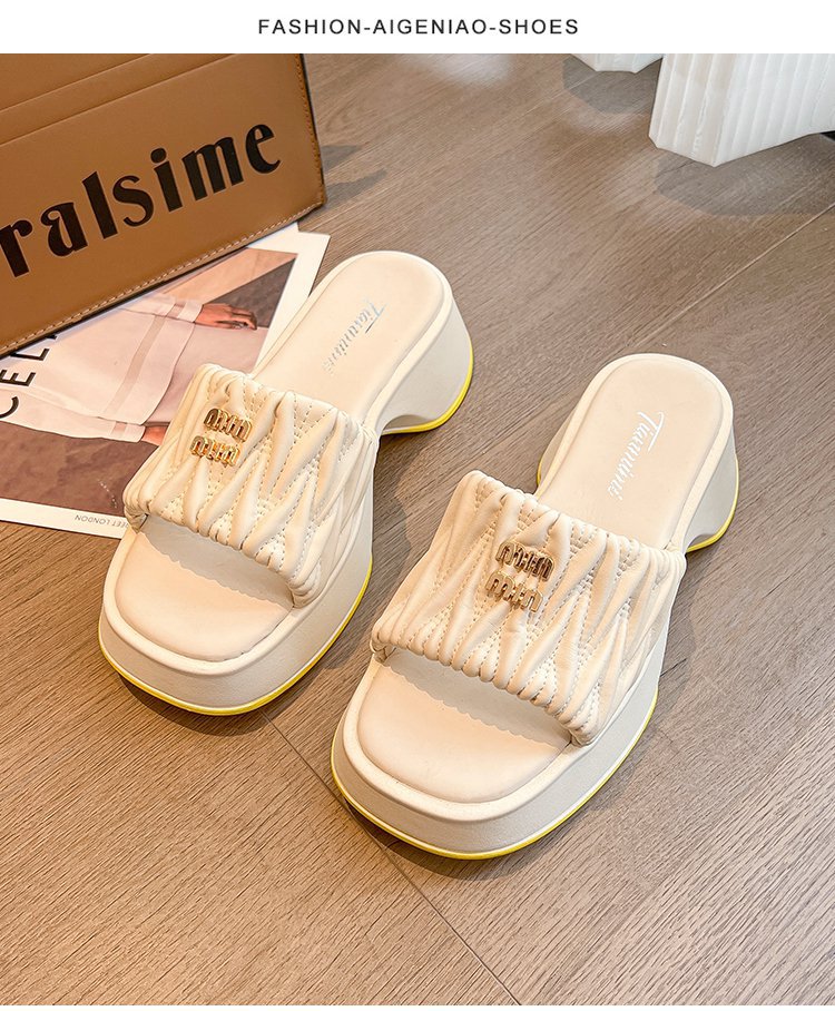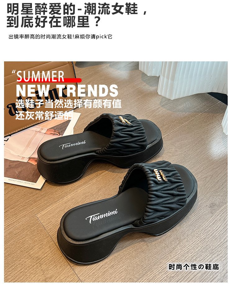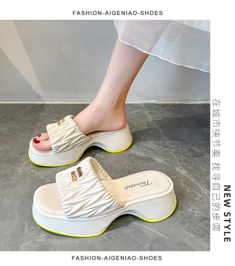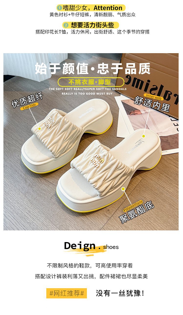 여성용 플리츠 클라우드 샌들 슬리퍼, 캐주얼하고 패셔너블한 스퀘어 토 웨지힐 슬리퍼, 2024 여름 아우터용 슬립온 슬리퍼스토어 가기