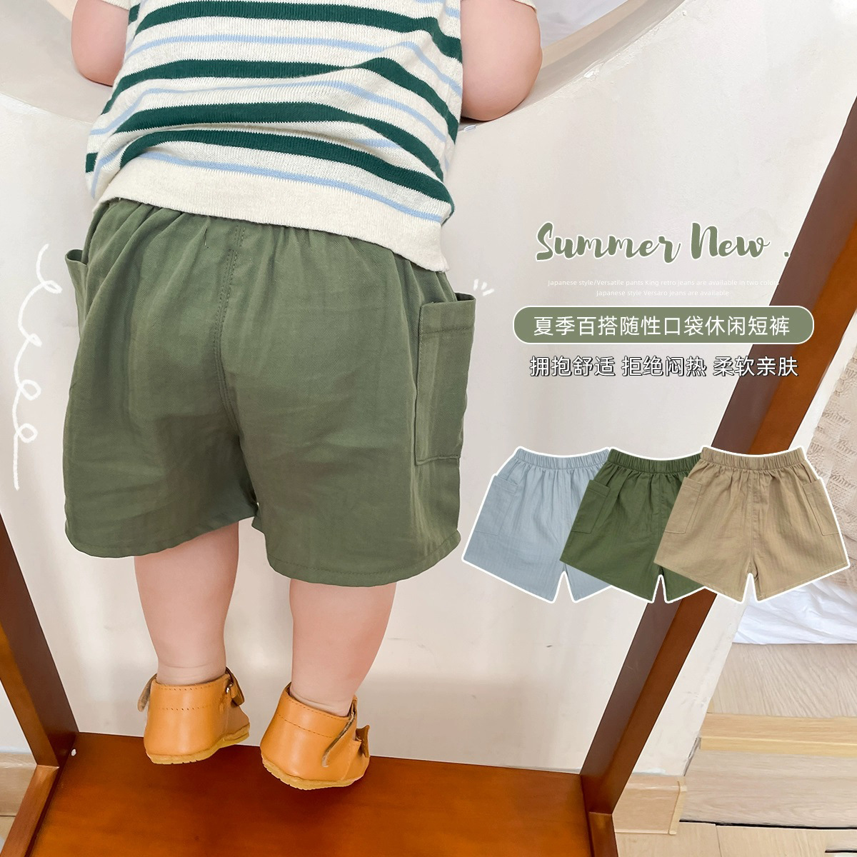 여름 인터넷 연예인 어린이 쿨 팬츠 얇은 모든 매치 사이드 포켓 여아 남아 반바지 단색 순면 어린이 반바지스토어 가기