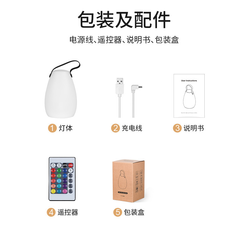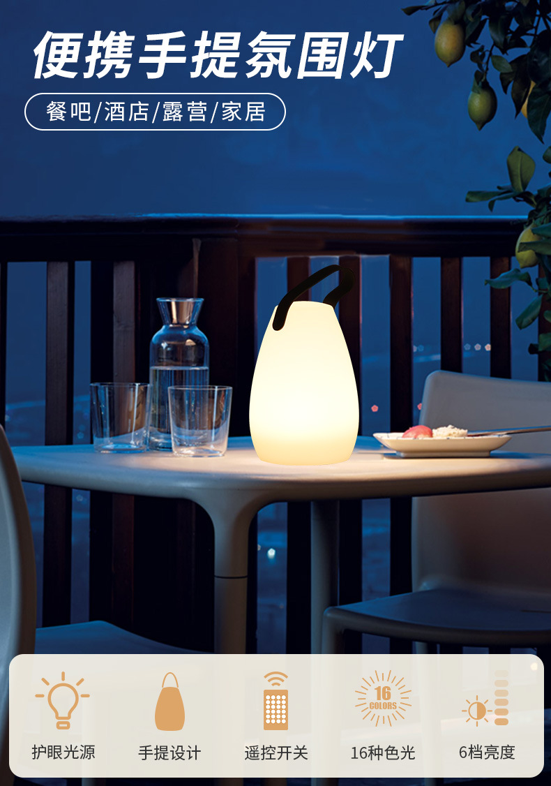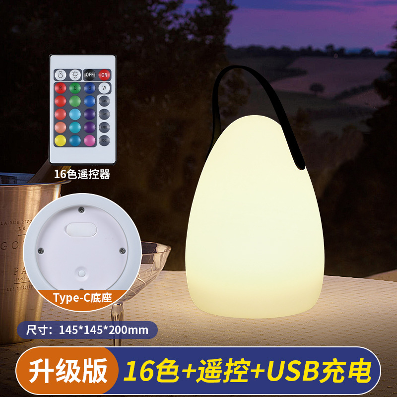 • [계란형 휴대용 램프 업그레이드 버전] 16가지 색상 + 리모컨 + USB 충전