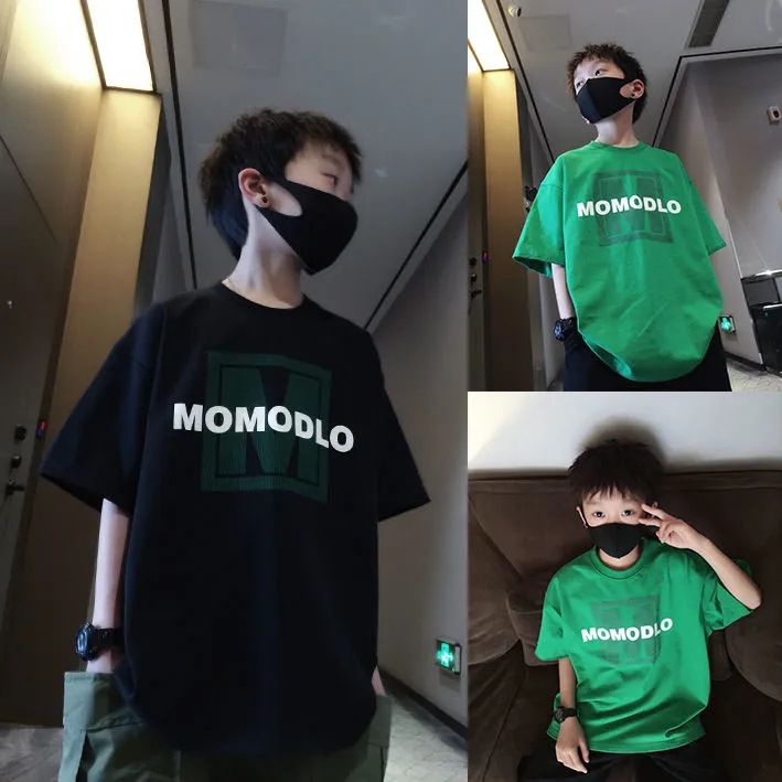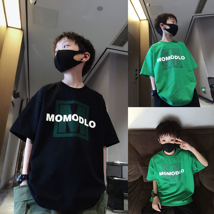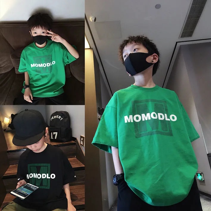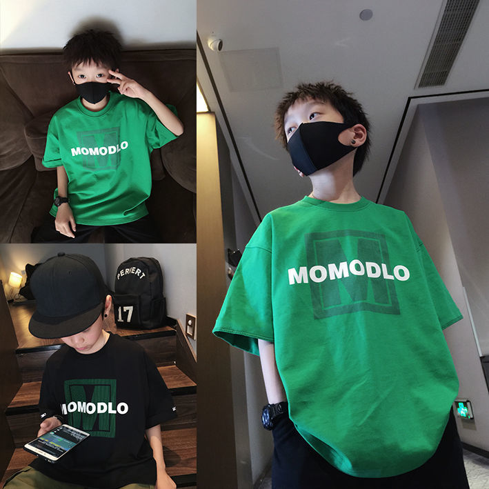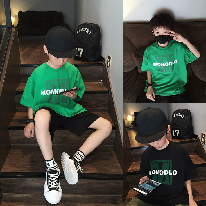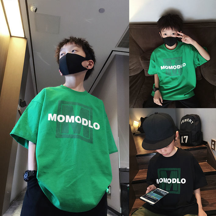 여름 어린이 잘 생긴 순면 티셔츠 얇은 소년 캐주얼 스트리트 프라이드 트렌디 탑 미드 빅 어린이 크루넥 하프 슬리브 셔츠