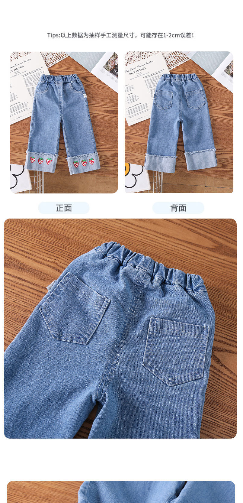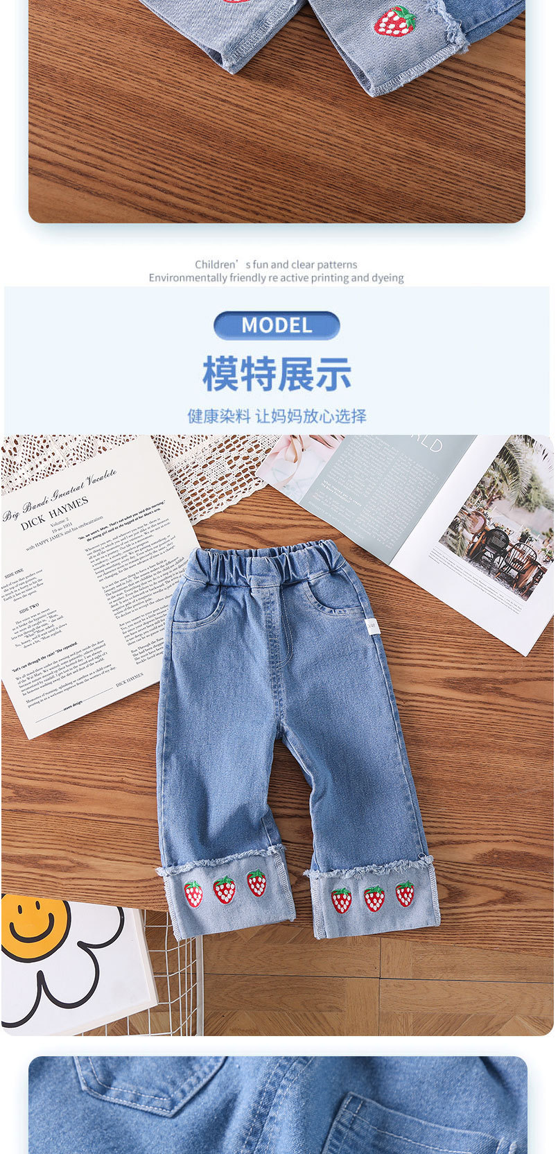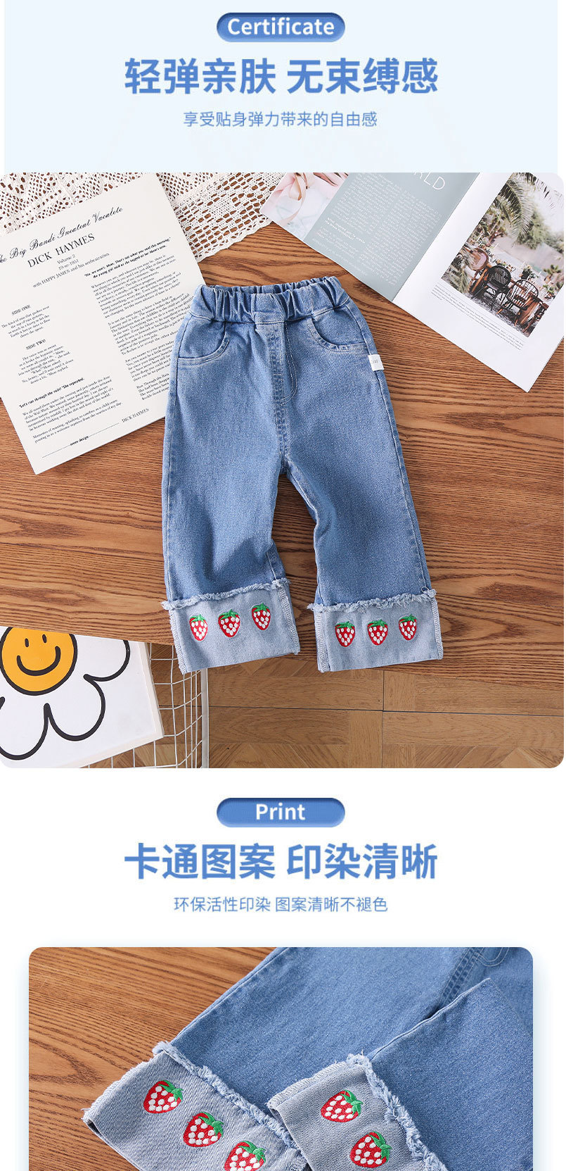 봄과 가을 여아 청바지 세련된 여아 청바지 여아 바지 데님 딸기 스트레이트 레그 팬츠스토어 가기