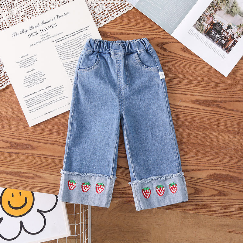 봄과 가을 여아 청바지 세련된 여아 청바지 여아 바지 데님 딸기 스트레이트 레그 팬츠