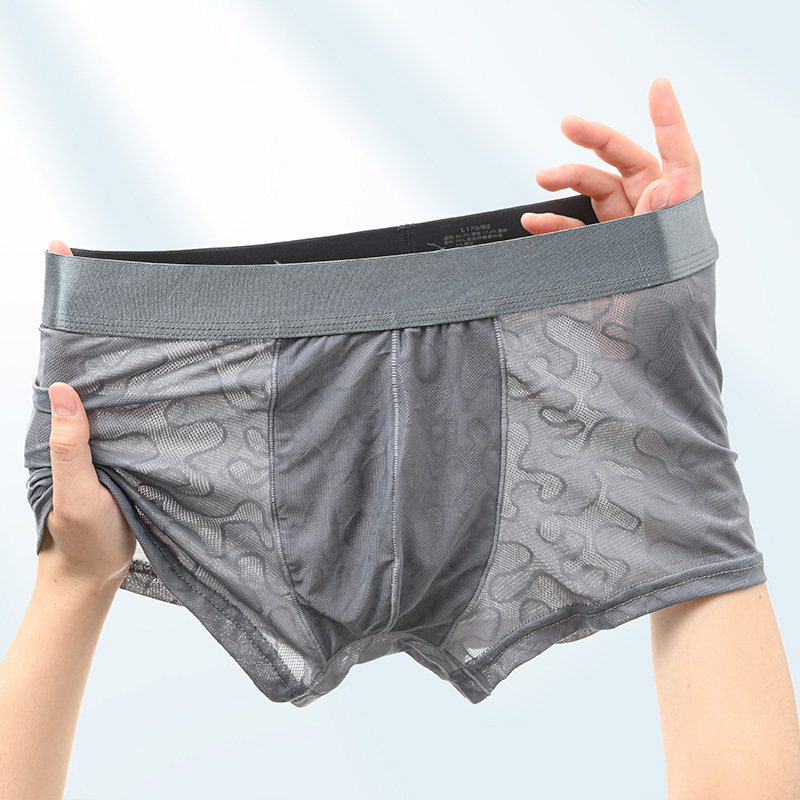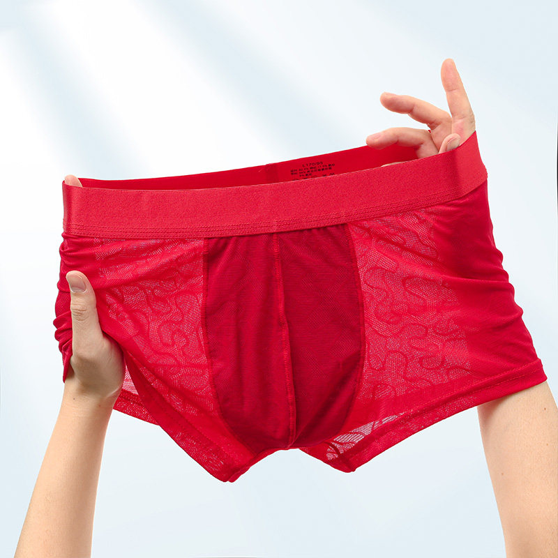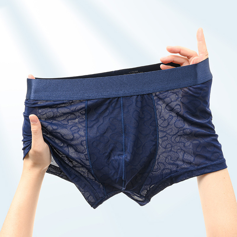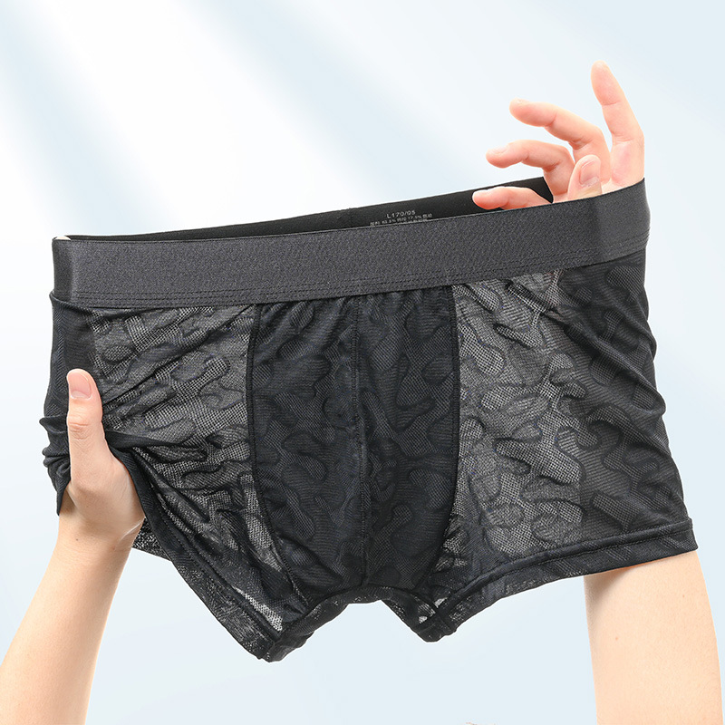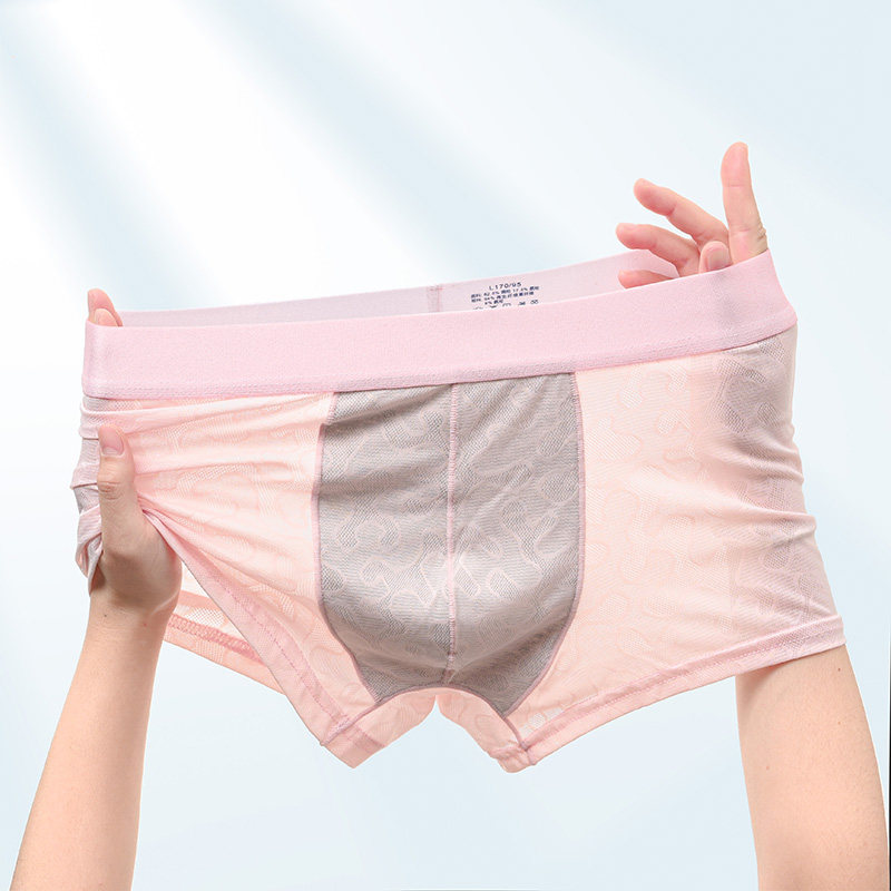 핑크 레이스 속옷 남자의 아이스 실크 여름 섹시한 얇은 통기성 복서 반바지 남자의 여름 바지
