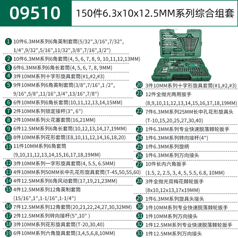 Shida 자동 수리 도구 세트 150 조각 09510 수리 특수 조합 128 조각 자동 소매 09014A스토어 가기