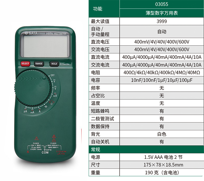 • 03055/얇은 디지털 멀티미터(최대 판독값 3999)