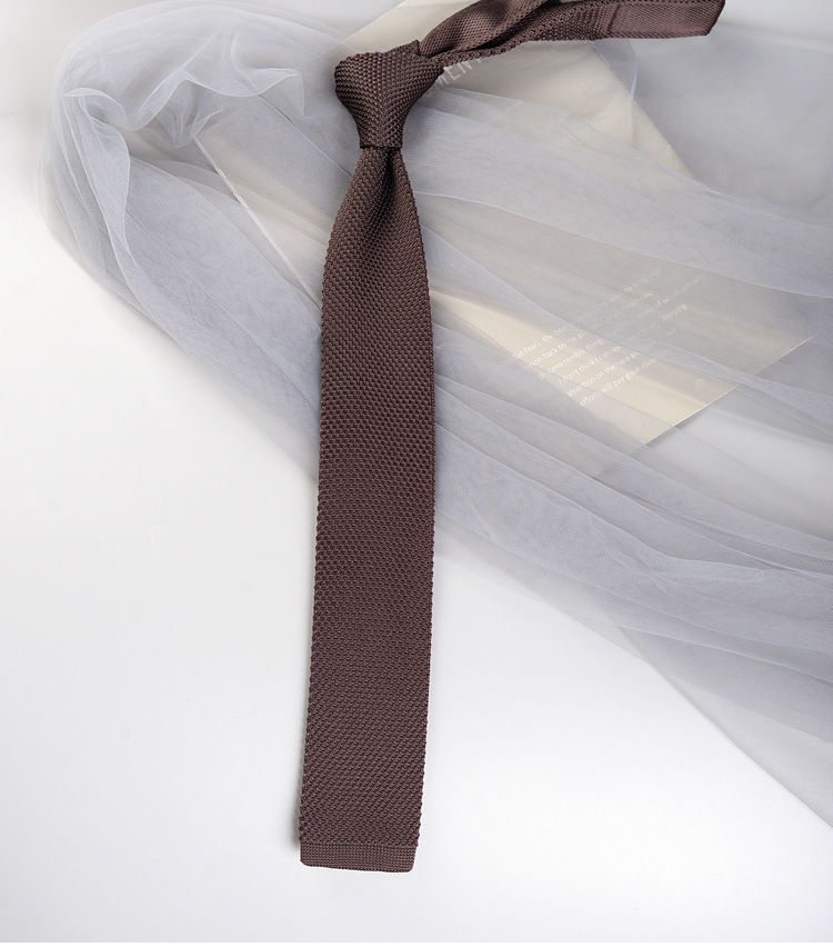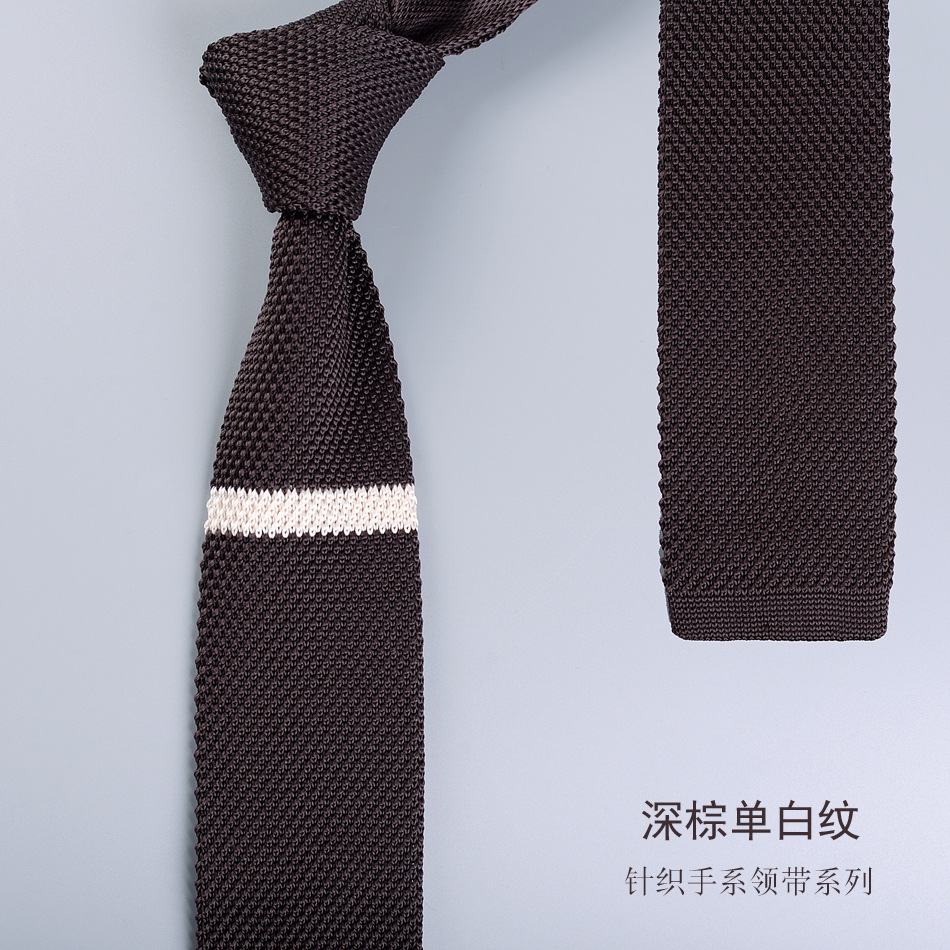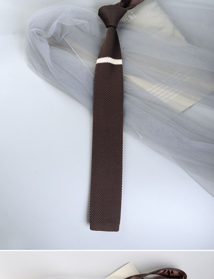 • 다크 브라운/싱글 화이트 스티프헤드 니트 타이
