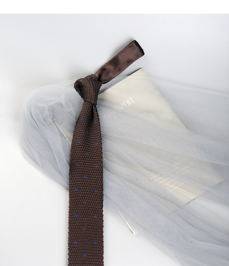 • 다크 브라운/파란색 뾰족한 니트 넥타이