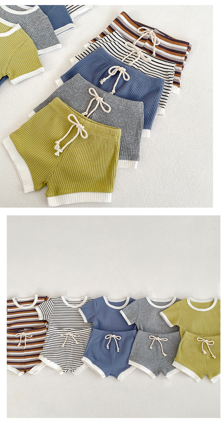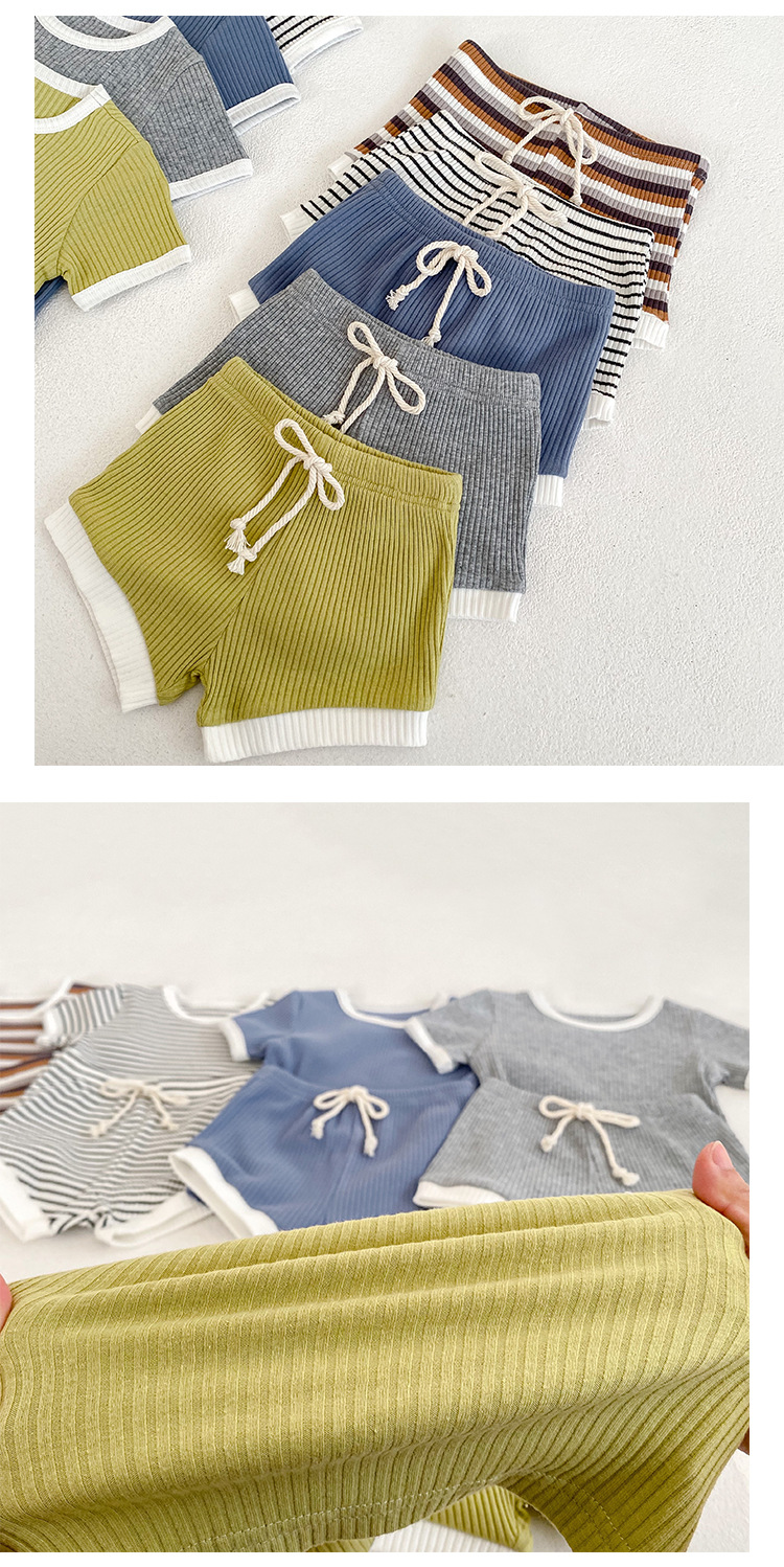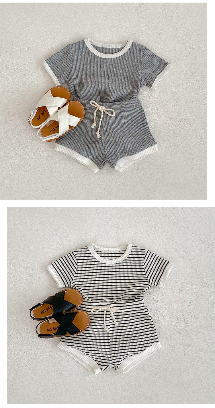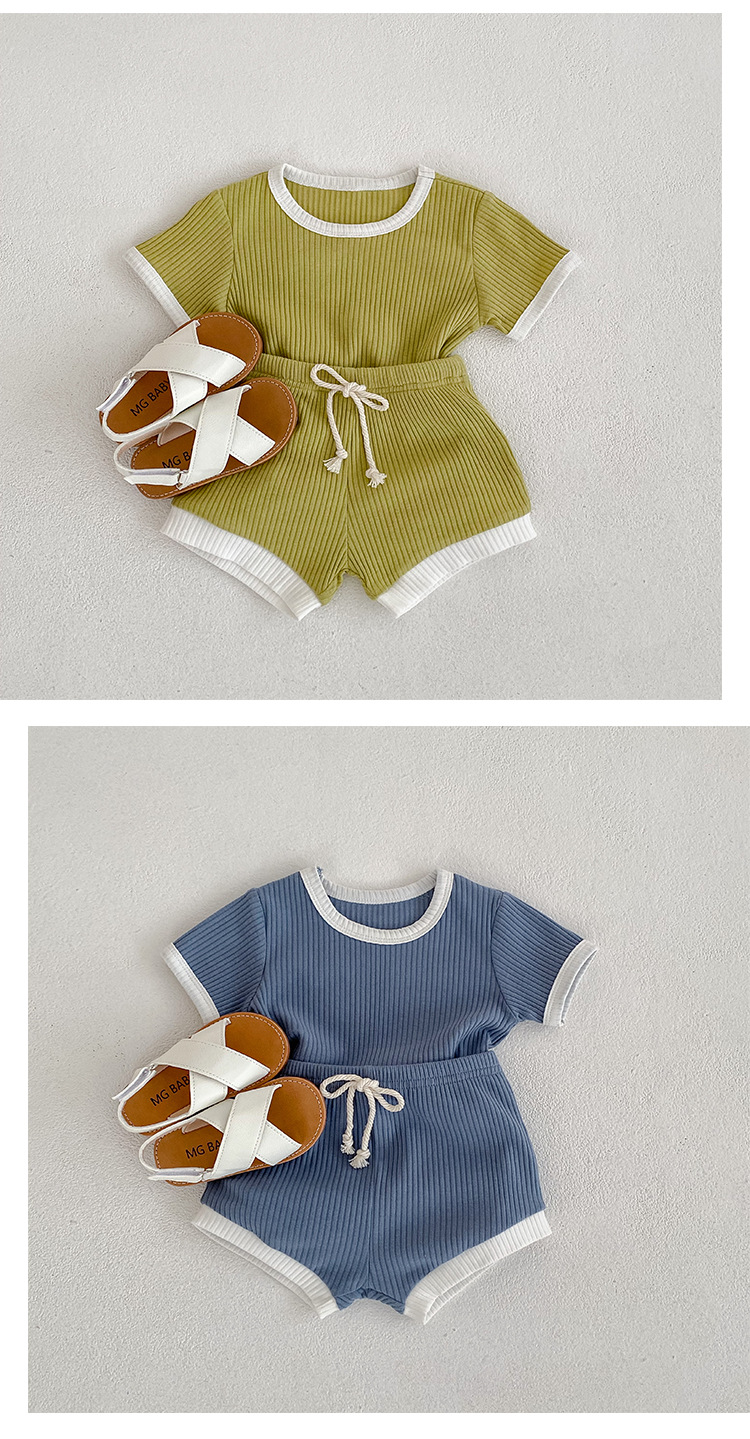 남자 베이비 세트 여름 뉴 베이비 심플 캐주얼 크루넥 티셔츠 라지 PP 팬츠 투피스 세트 한국식 올매치 트렌디