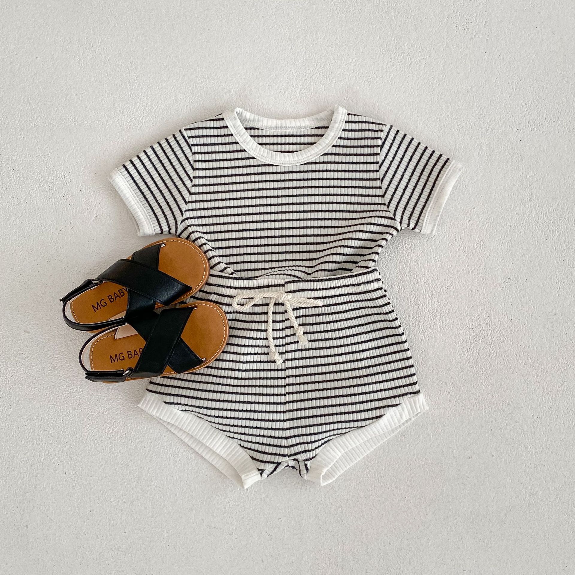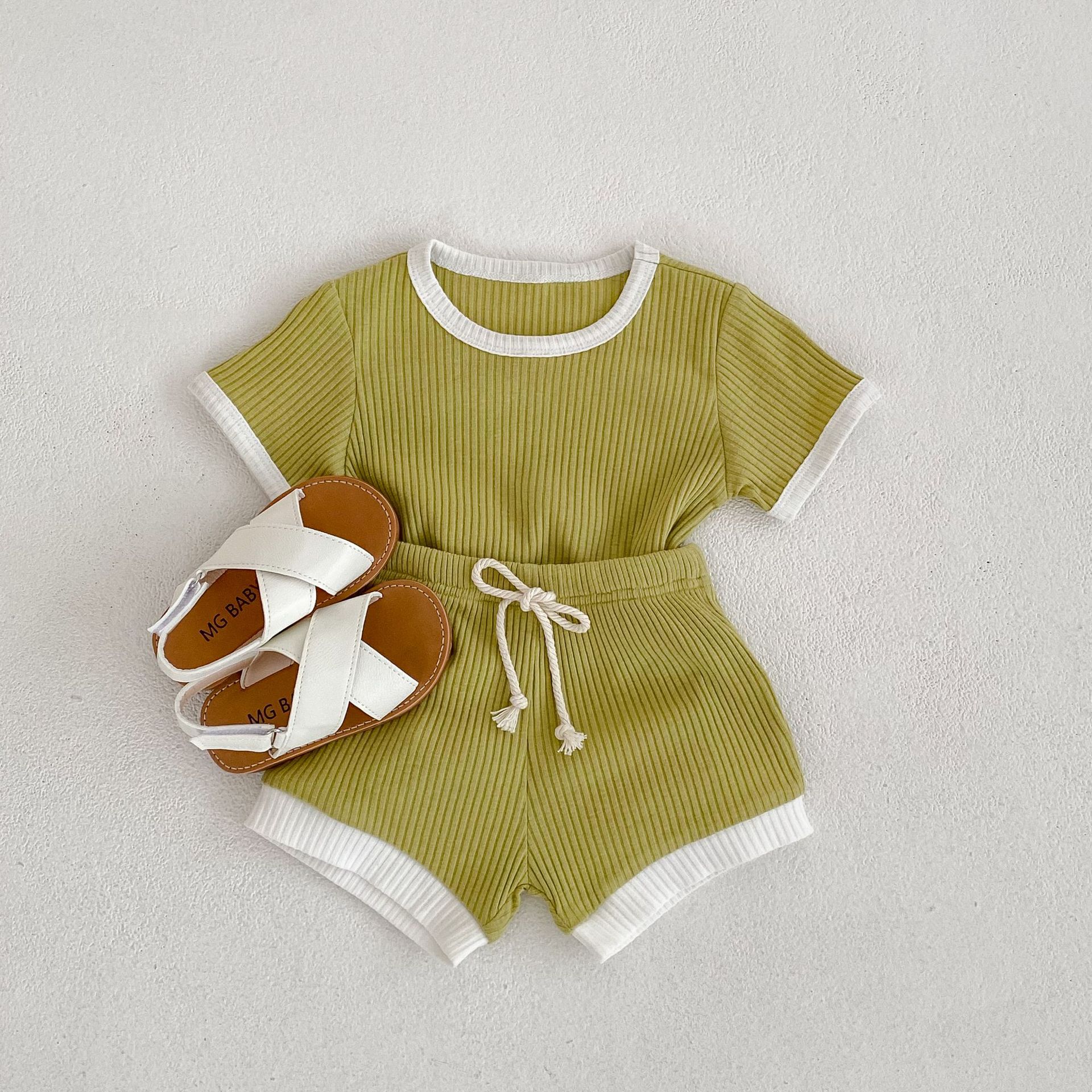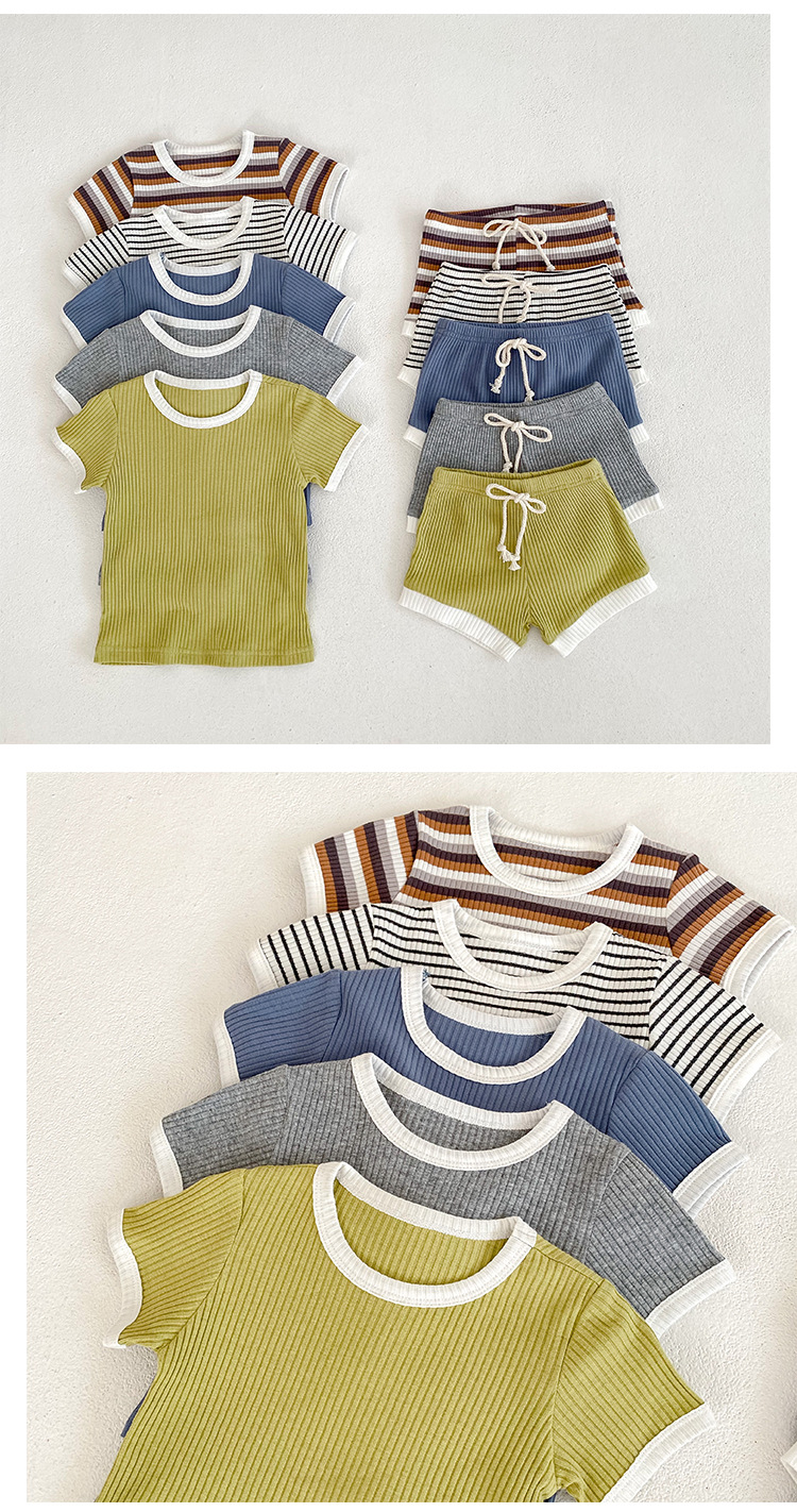 남자 베이비 세트 여름 뉴 베이비 심플 캐주얼 크루넥 티셔츠 라지 PP 팬츠 투피스 세트 한국식 올매치 트렌디