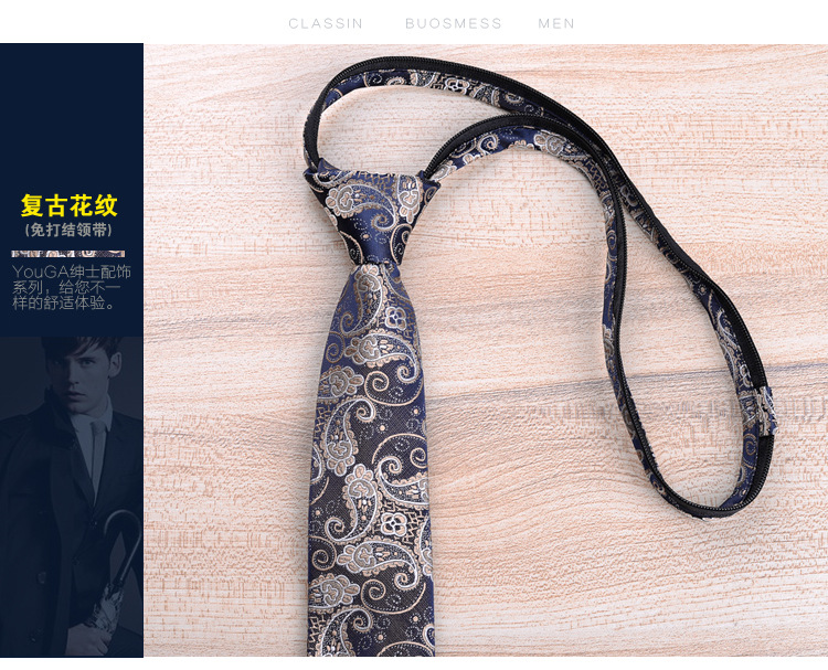 게으른 넥타이 남자의 좁은 6cm 지퍼 넥타이 신랑 결혼식 순수한 검정 당기기 쉬운 패션 넥타이스토어 가기