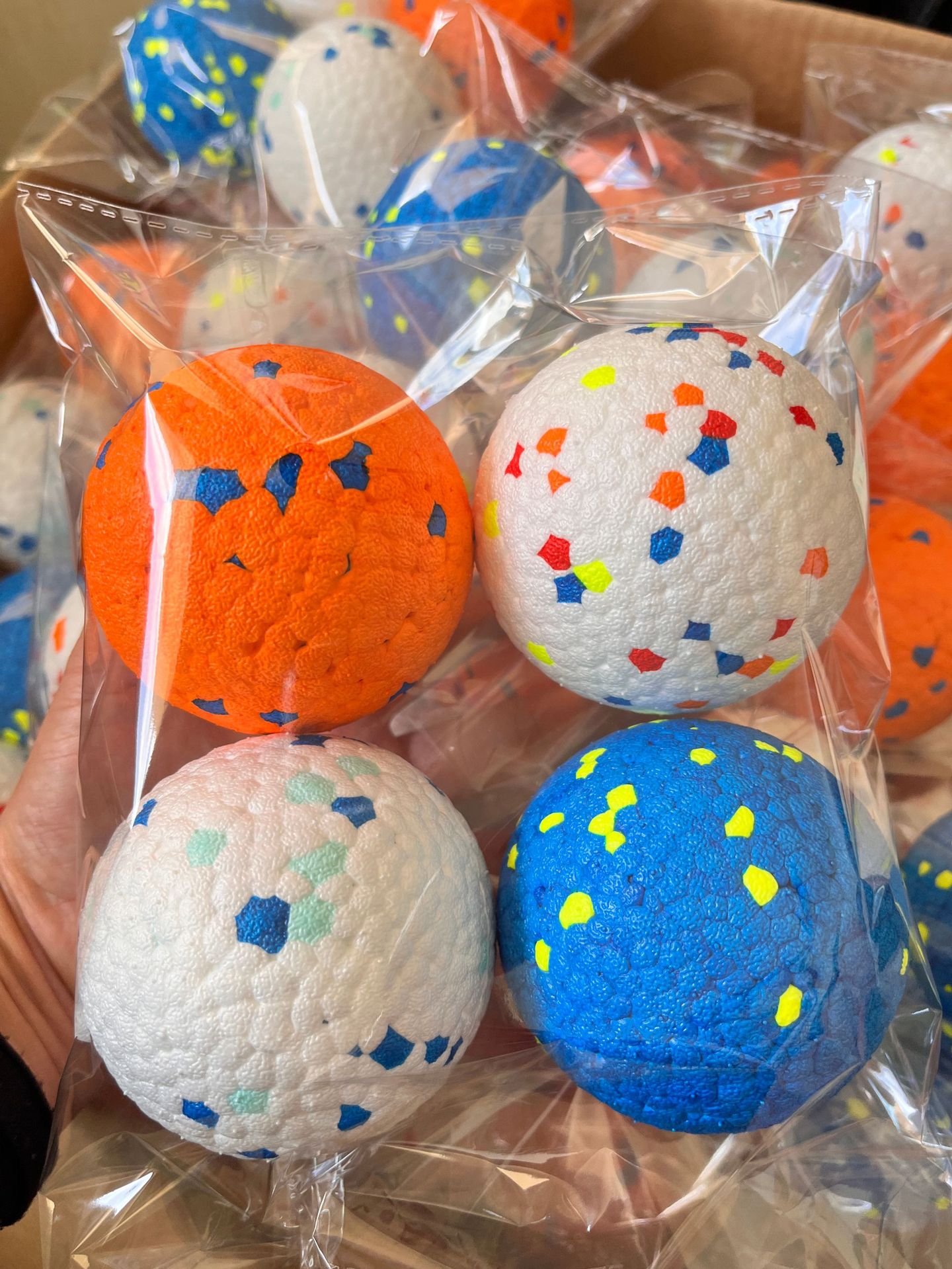 此宠物球为爆米花材料,由于材料及生产工艺特殊性,产品表面彩色颗粒无法分布均匀.部份产品会有毛边或者表面轻微瑕疵,介意者慎拍!!如有疑问,请联系客服!
