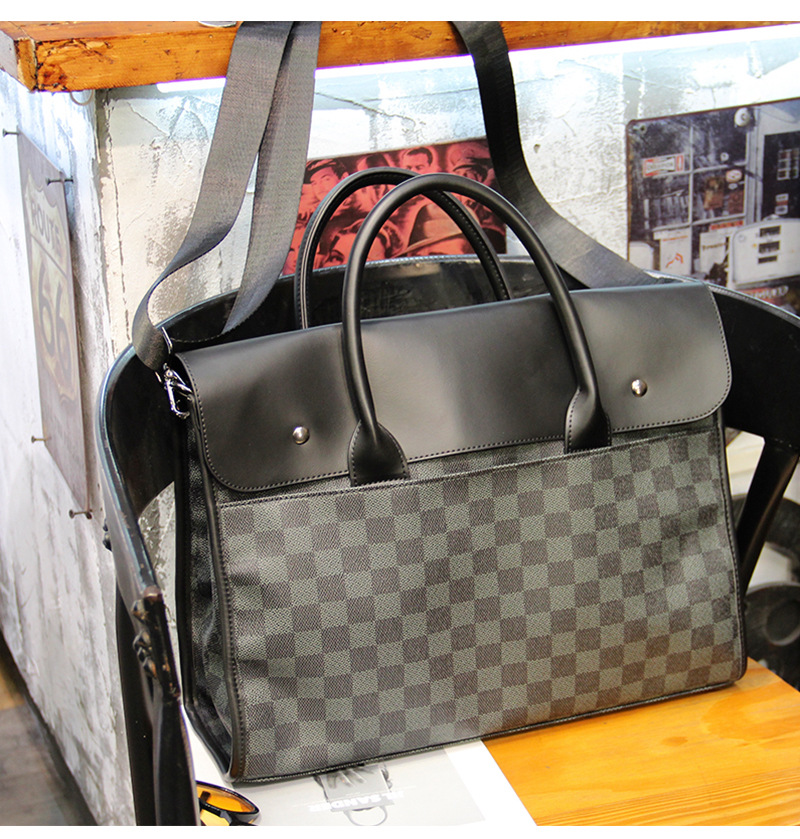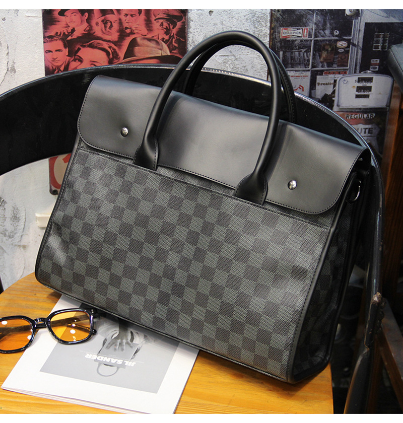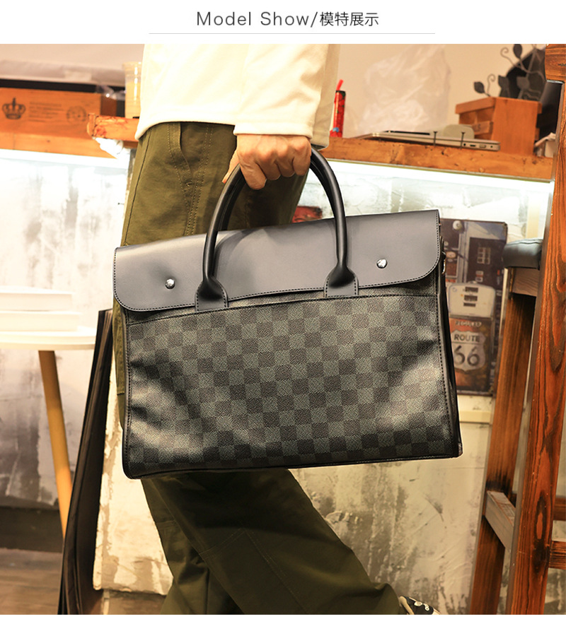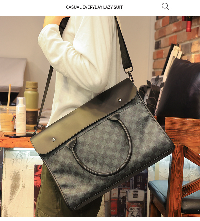 새로운 격자 무늬 핸드백 수평 비즈니스 서류 가방 컴퓨터 가방 캐주얼 크로스바디 백 남성용 한국식 숄더백스토어 가기