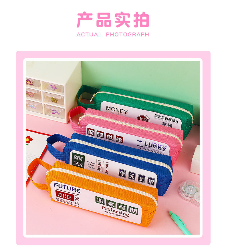 창조적 인 영감 텍스트 핸드백 유형 지퍼 캔버스 연필 가방 초등 및 중학생을 위한 간단한 문구 케이스 연필 가방스토어 가기