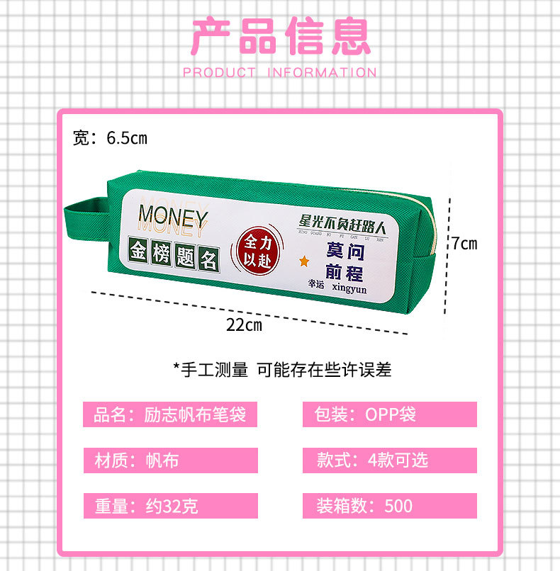 창조적 인 영감 텍스트 핸드백 유형 지퍼 캔버스 연필 가방 초등 및 중학생을 위한 간단한 문구 케이스 연필 가방