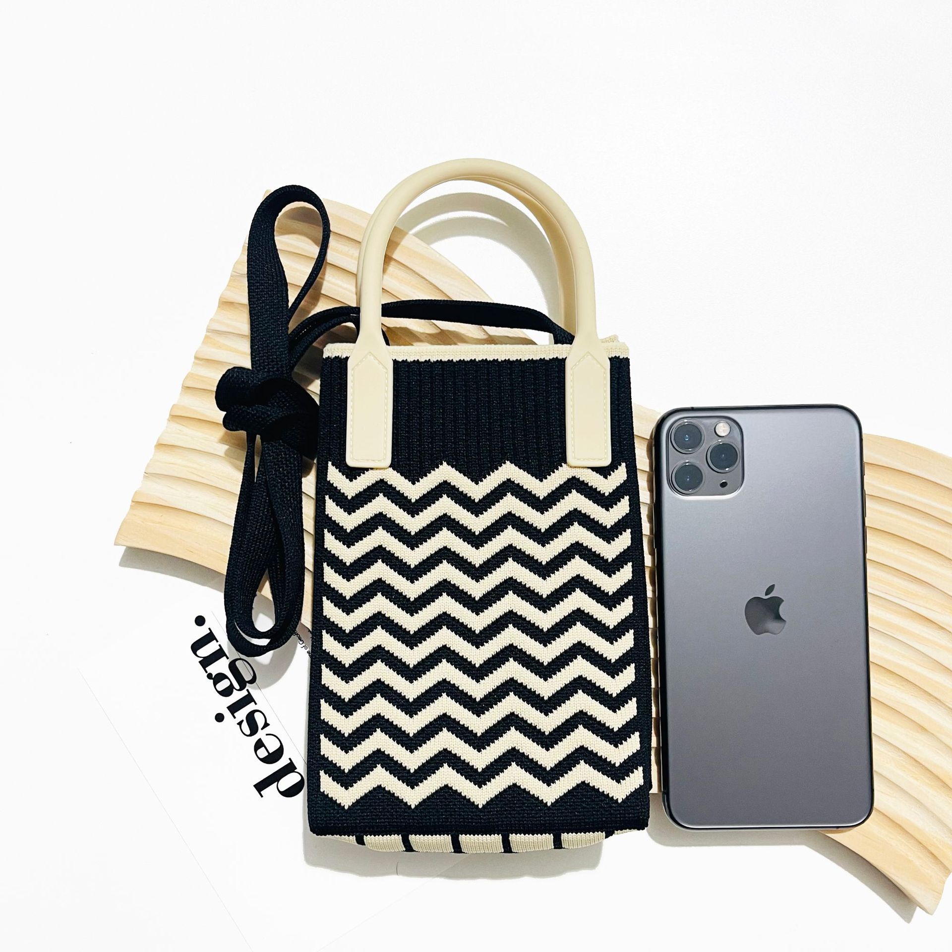 수출 일본과 한국 틈새 물 골판지 니트 휴대 전화 가방 매일 매칭 소녀 미니 크로스 바디 핸드백 해외 무역스토어 가기