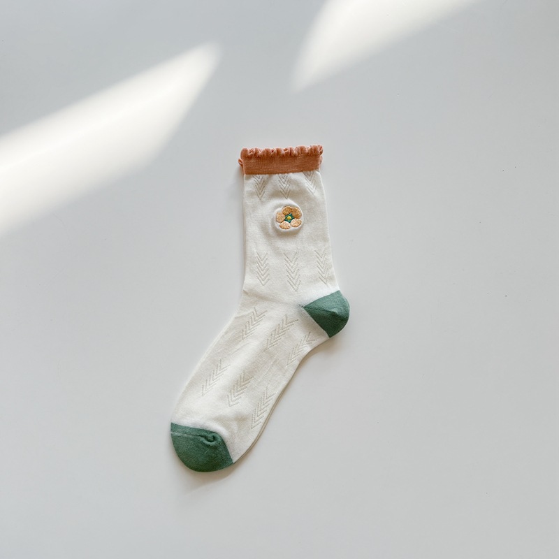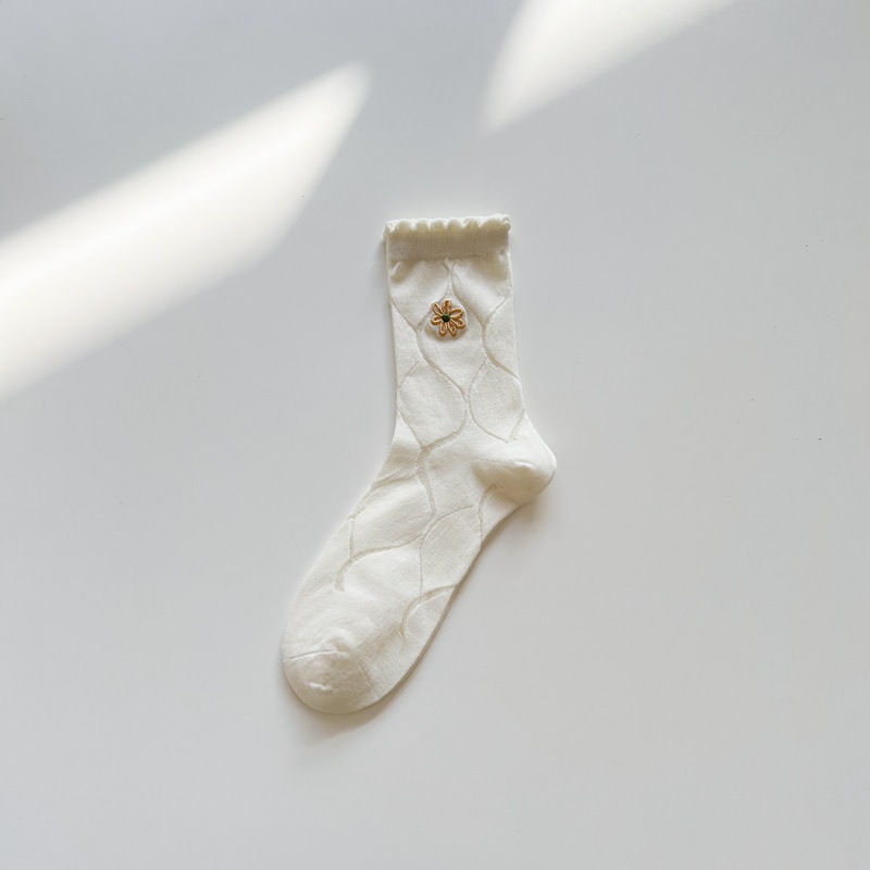 봄과 여름 2023 통기성 메쉬 작은 꽃 자수 얇은면 튜브 양말 여성용 편안하고 섬세한 얇은 양말스토어 가기