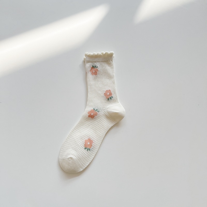 봄과 여름 2023 통기성 메쉬 작은 꽃 자수 얇은면 튜브 양말 여성용 편안하고 섬세한 얇은 양말