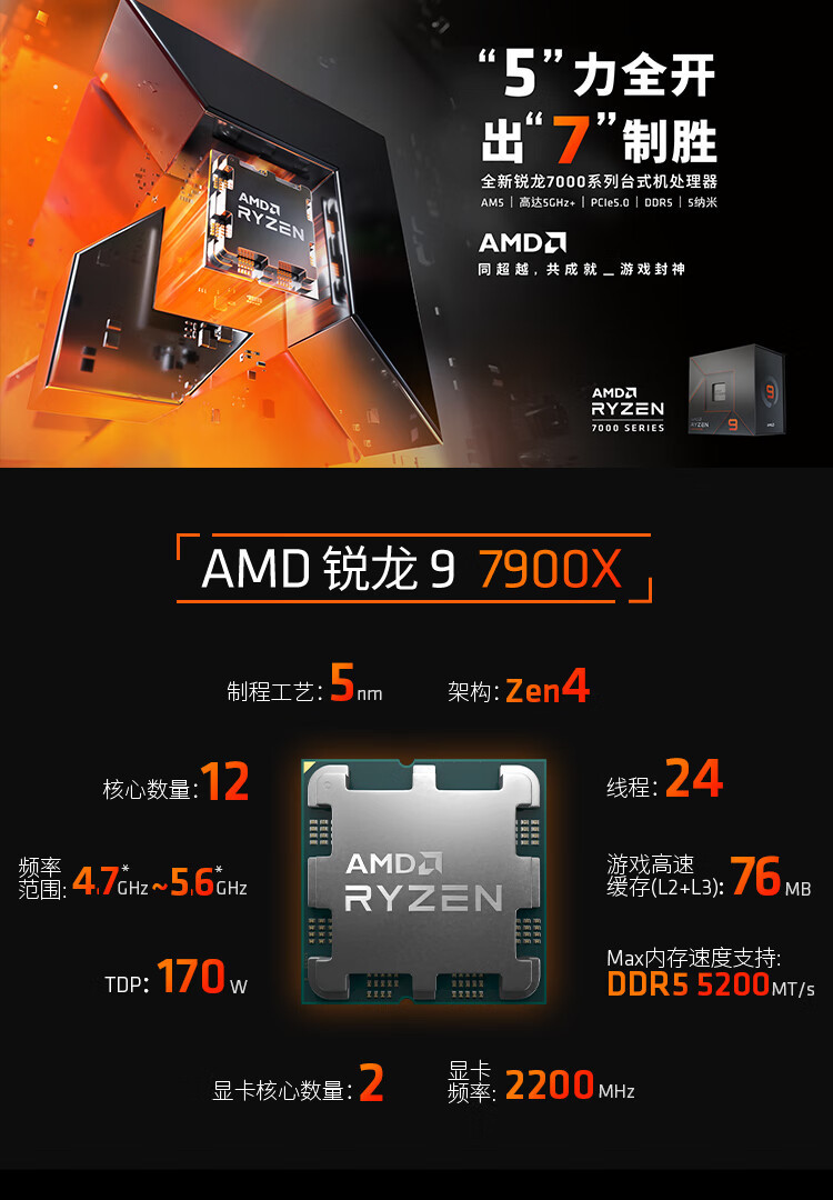 AMD 7000 시리즈 라이젠 R9 7900X 프로세서 CPU AM5 인터페이스 박스형 멀티코어