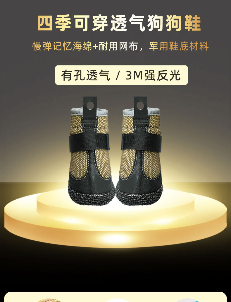25 여름용 강아지 신발 테디 애완견용 작은 메쉬 샌들 중대형견용 블랙 골드 통기성 부드러운 밑창 강아지 신발 도매