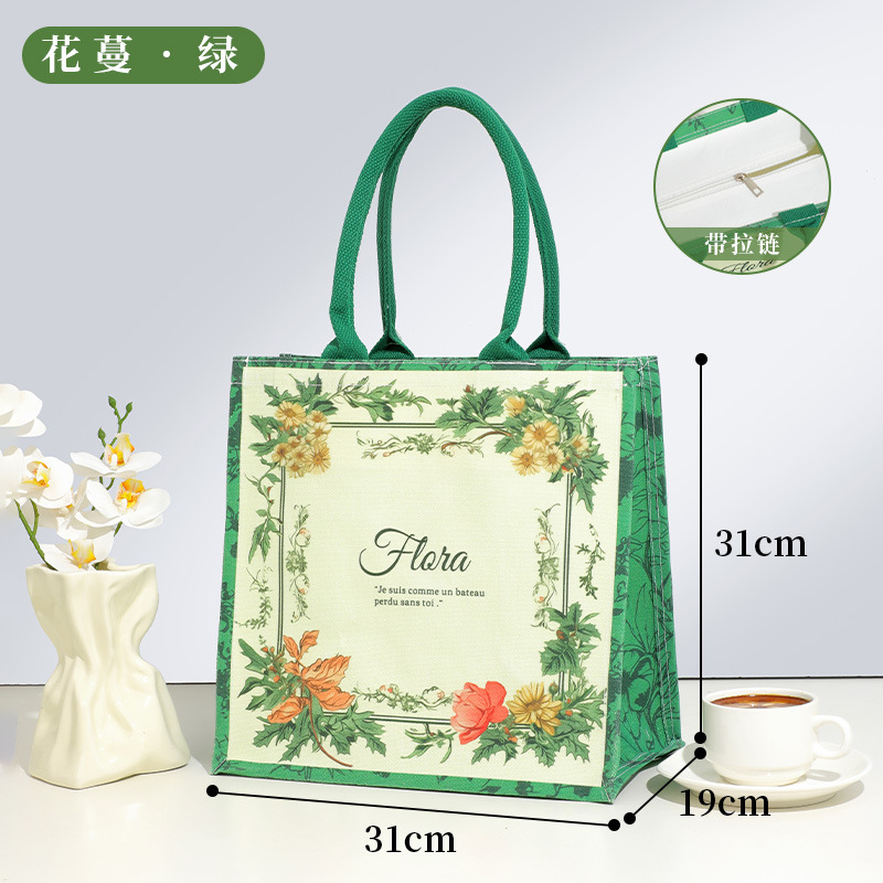 • 지퍼가 달린 꽃 덩굴 녹색 사각형 중간 크기