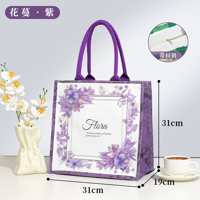 • 지퍼가 달린 꽃 덩굴 보라색 사각형 중간 크기