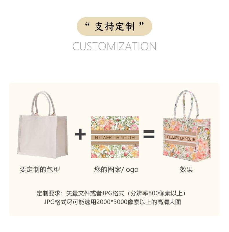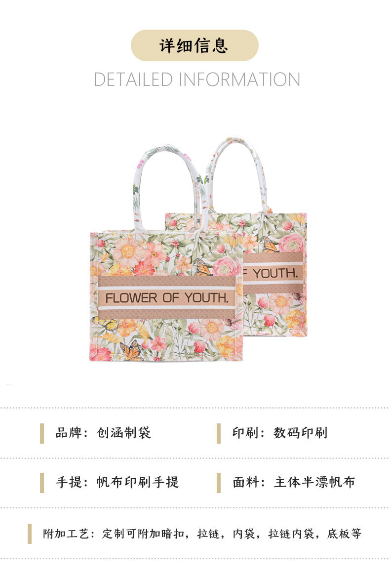 캔버스 가방 대용량 꽃무늬 나비 캔버스 백 공장 다중 포켓 도매 여성 기념품 휴대용 토트백
