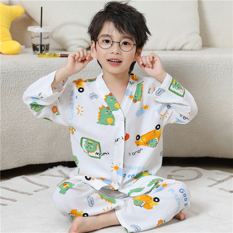 어린이 여름 얇은 긴팔 차가운 방지 가정 의류 여성의 큰 어린이 아기 잠옷 에어컨 의류 인공 면 세트스토어 가기