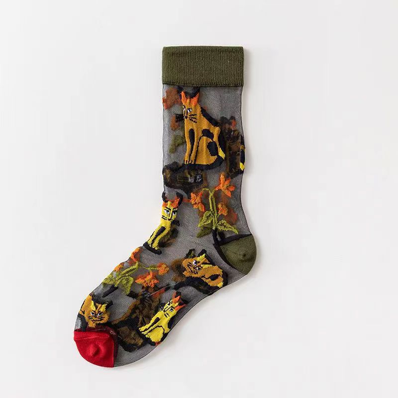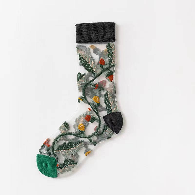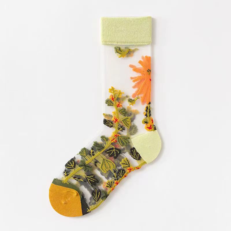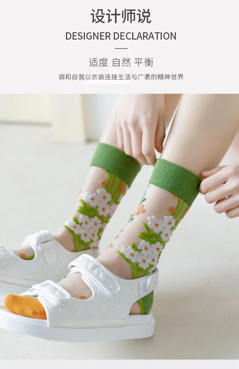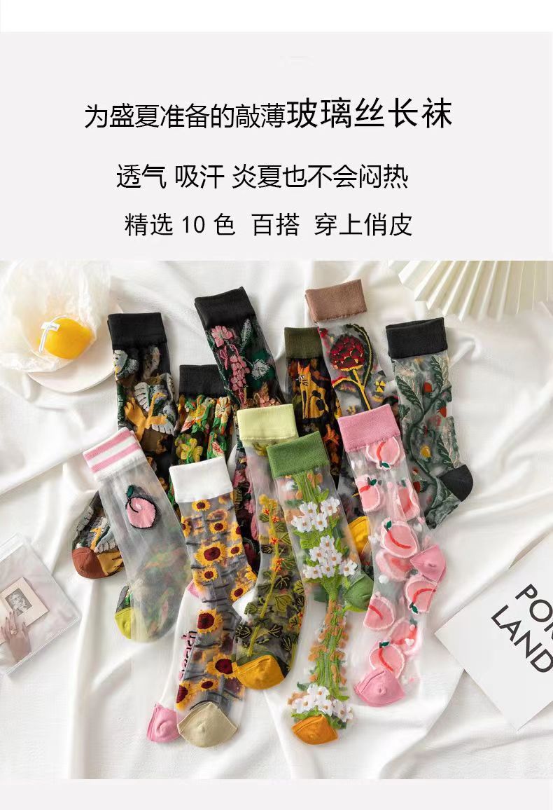24 봄과 여름 여성 양말 얇은 미드 튜브 패션 양말 유럽과 미국 스타일의 꽃 모리 유리 스타킹 제조 업체 도매