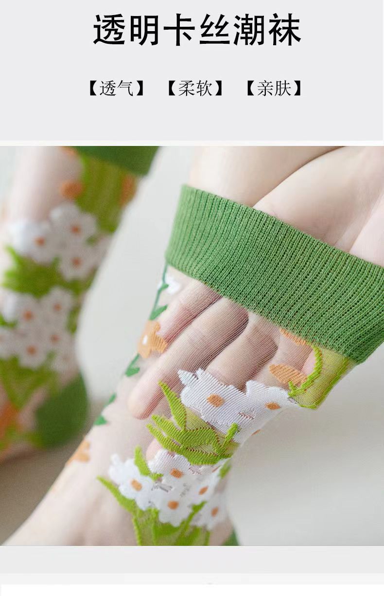 24 봄과 여름 여성 양말 얇은 미드 튜브 패션 양말 유럽과 미국 스타일의 꽃 모리 유리 스타킹 제조 업체 도매스토어 가기