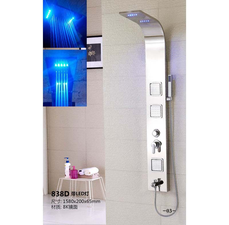 五档轮流出水。背喷:自主开发的全铜四喷咀,增氧气泡,柔和出水。顶喷:防堵塞隐形硅胶。瀑布:不锈钢材质结构。手持花洒:不锈钢/铜。下出水:铜。阀芯:西班牙赛道阀芯。分水管:自主开发不锈钢网丝管,抗寒、防爆。温度显示器:锁定出水温度,避免水温忽冷忽热。
