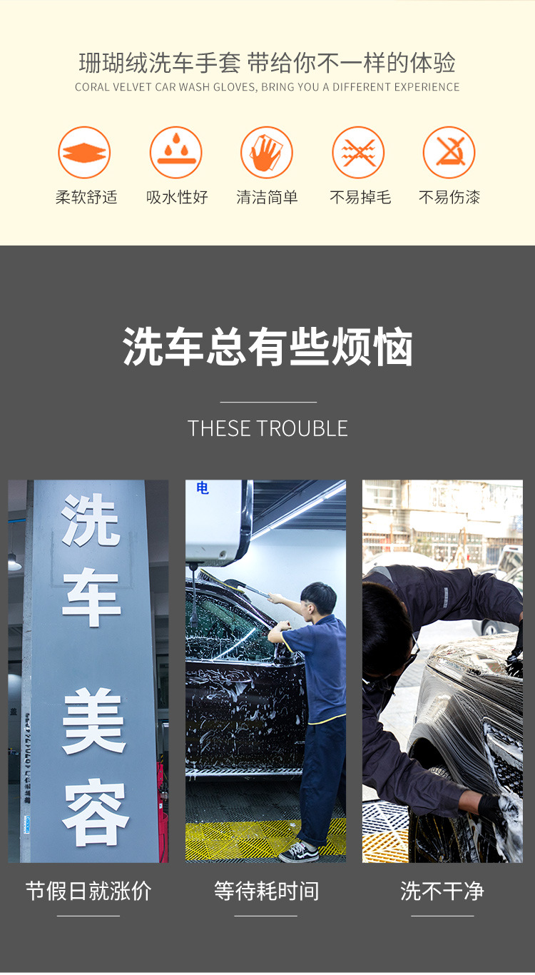 세차 장갑 양면 산호 양털 자동차 엄지 닦아 장갑 두꺼운 흡수 청소 도구 도매