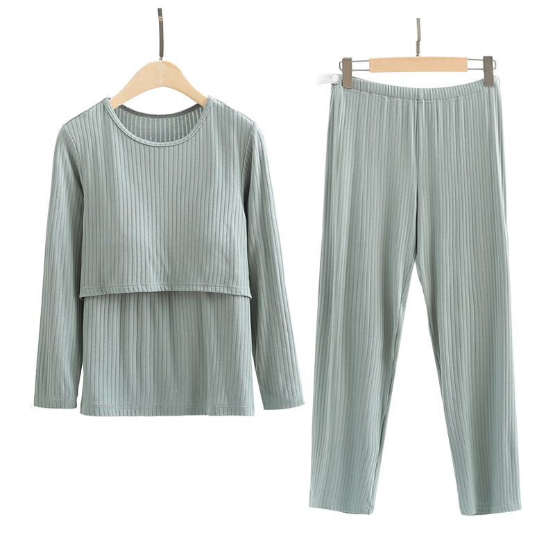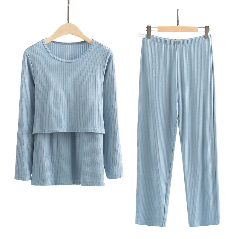 임산부 모유 수유 긴팔 세트 노 마모 브라 산후 간호 잠옷 모달 베이스 셔츠 봄 얇은 달 옷