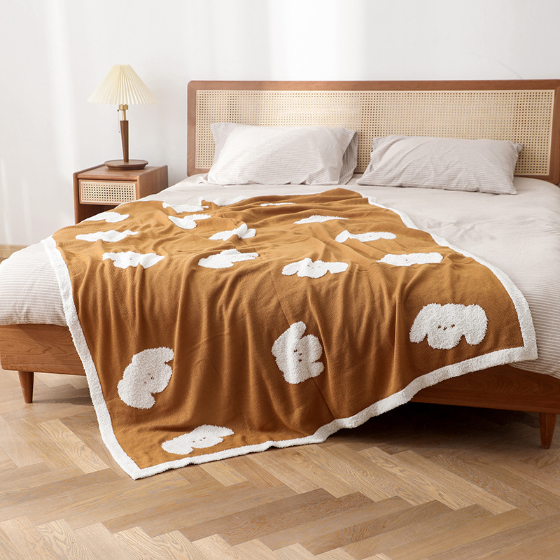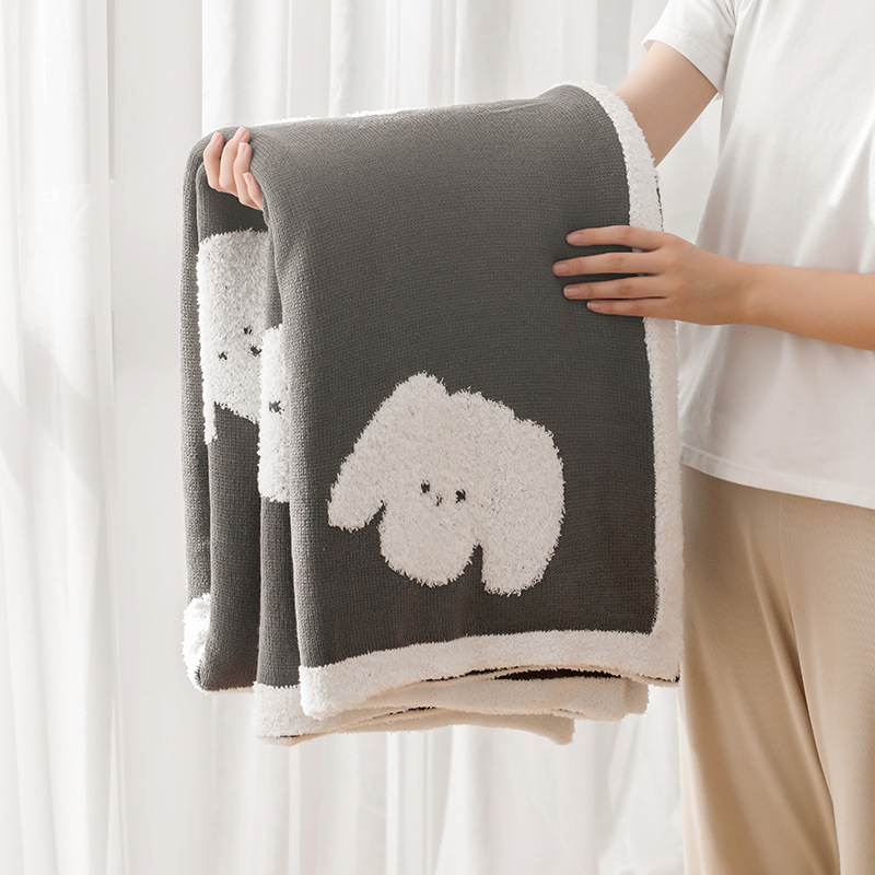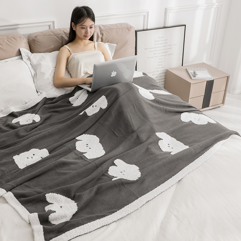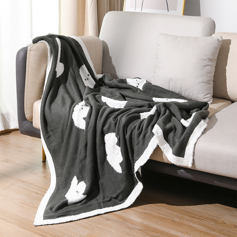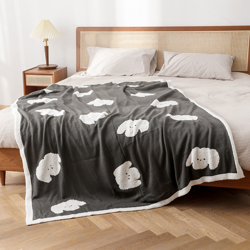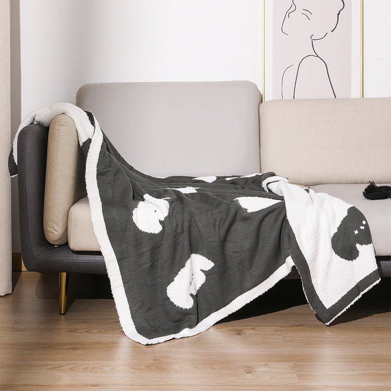 Ins 스타일 간단한 흑백 양면 벨벳 담요 강아지 낮잠 니트 소파 수건 담요 장식 소파