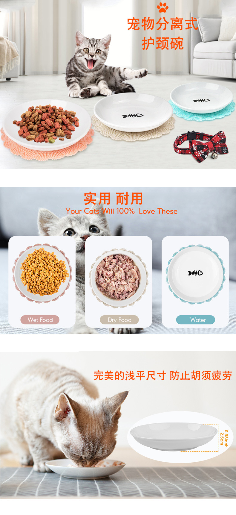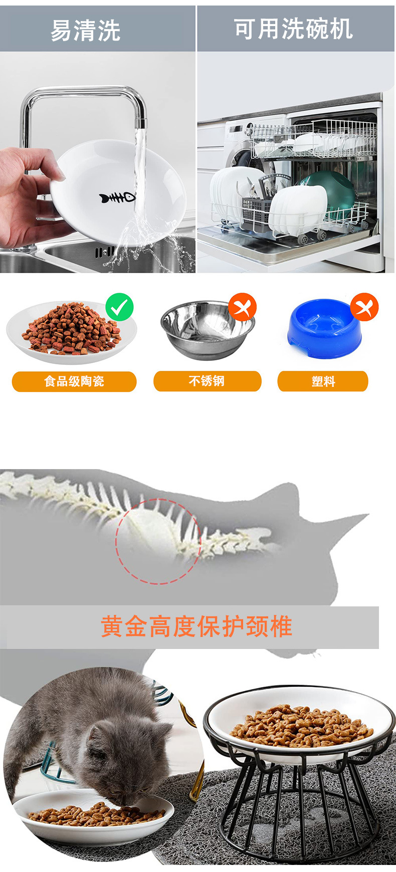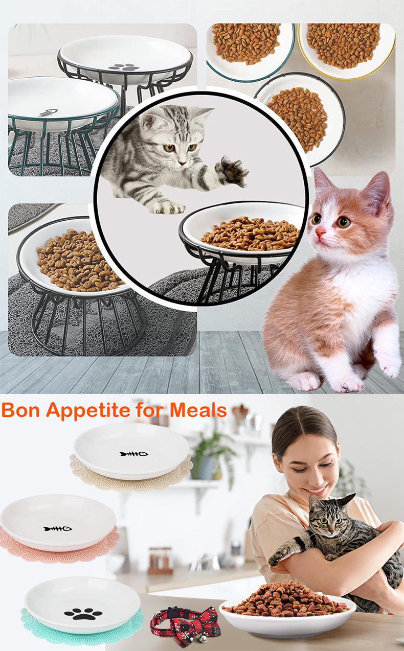 금속 고가 마시는 그릇 고양이 그릇 세라믹 목 보호 고양이 먹이 분지가있는 국경 간 도매 애완 동물 개 사발 간식 사발