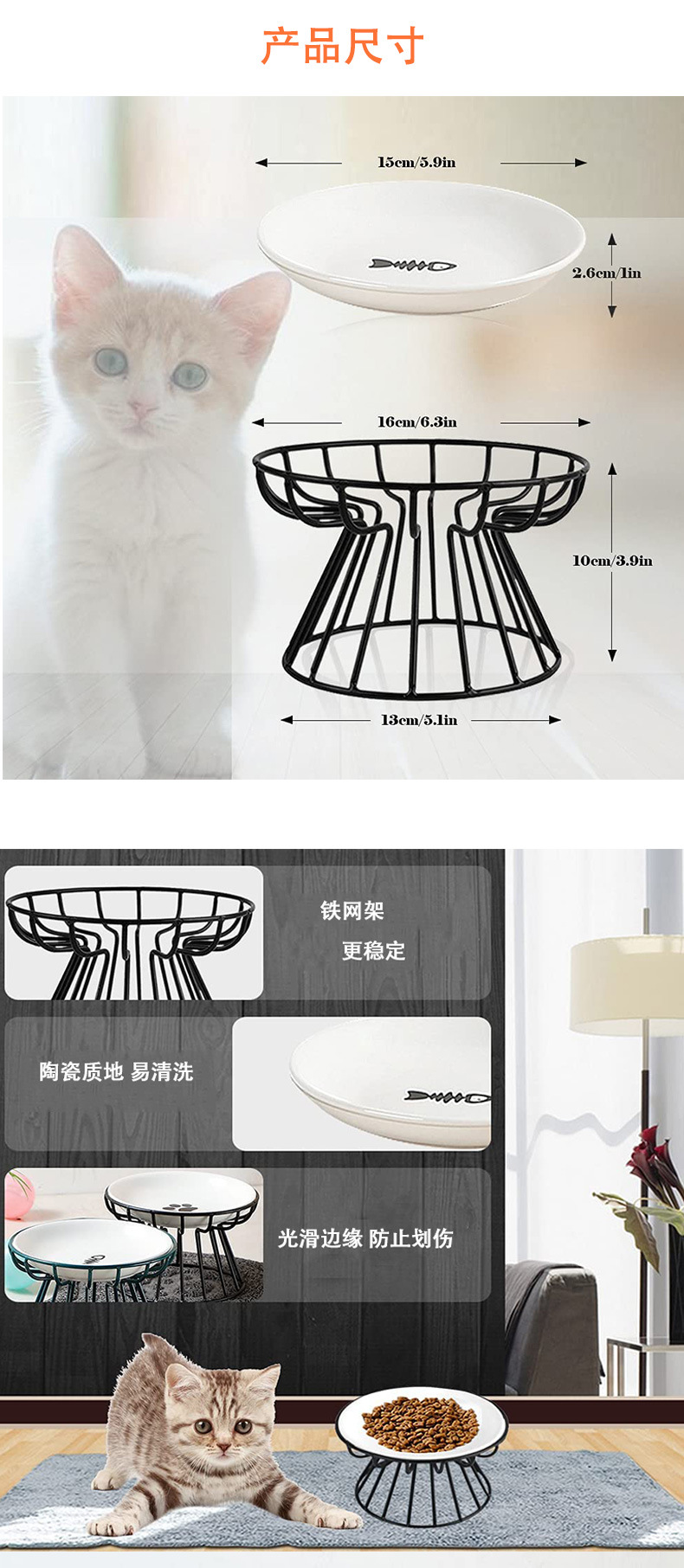 금속 고가 마시는 그릇 고양이 그릇 세라믹 목 보호 고양이 먹이 분지가있는 국경 간 도매 애완 동물 개 사발 간식 사발스토어 가기