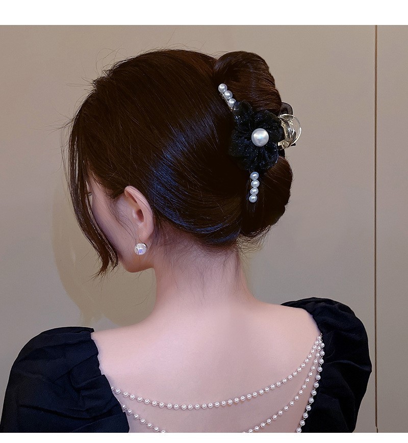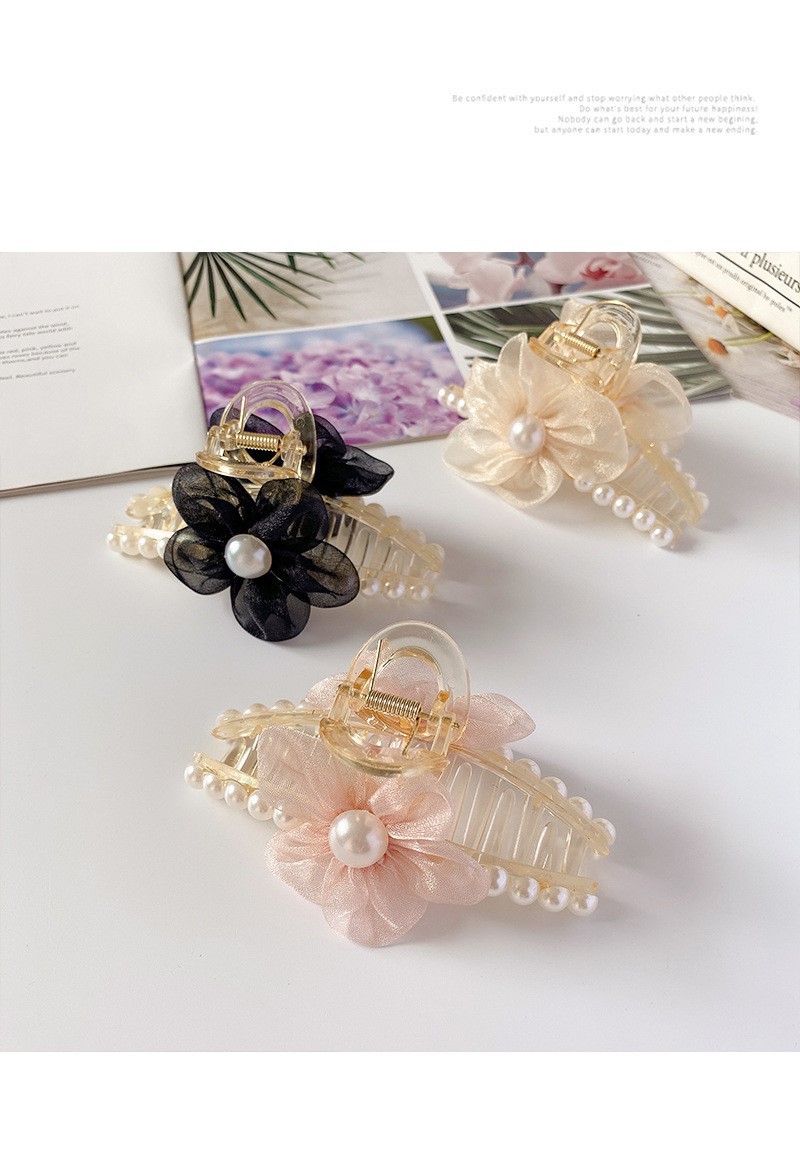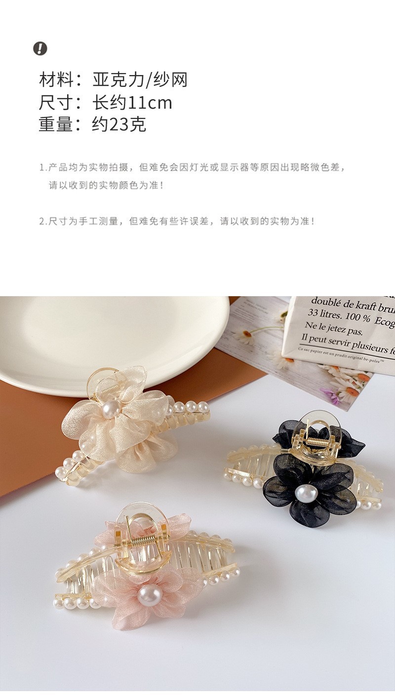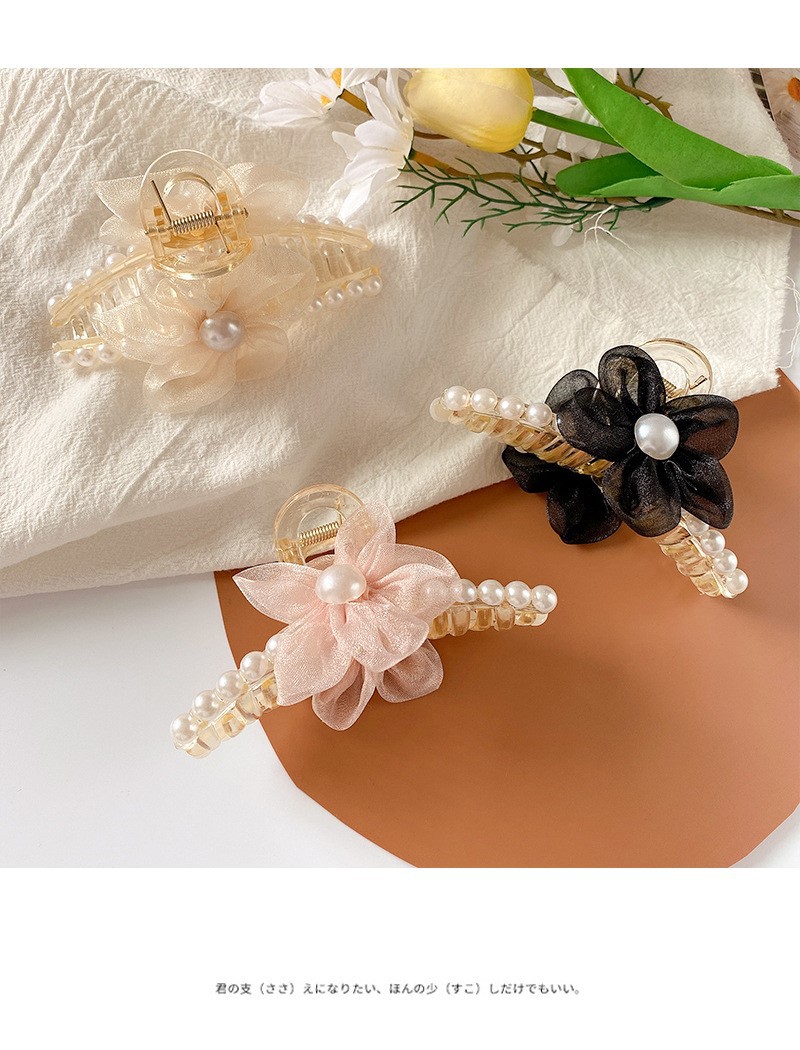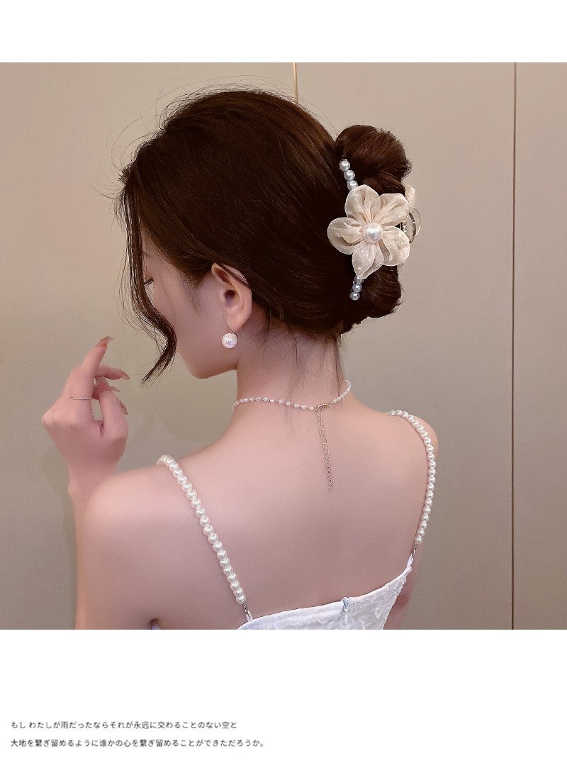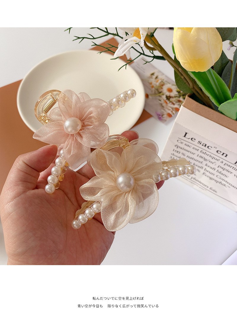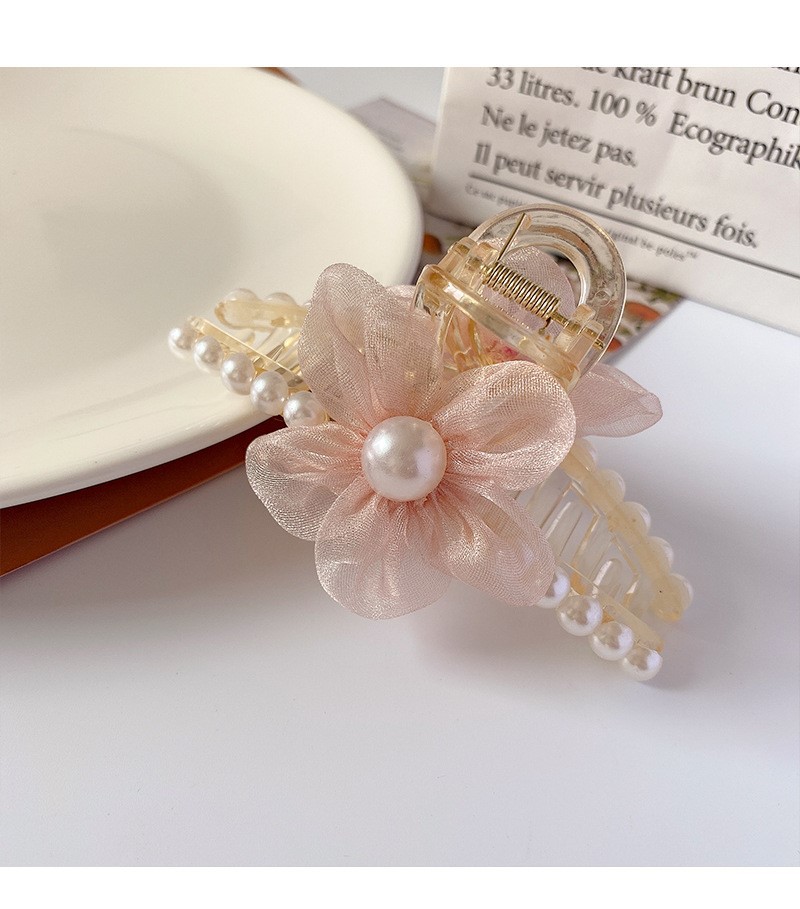 메쉬 꽃 진주 잡아 클립 우아한 상어 클립 고급 감각 헤어 그랩 여성용 백 헤드 클립 머리 장식 머리핀 헤어 액세서리