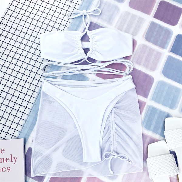 2023 유럽과 미국 스파이스 걸 여성용 스플릿 수영복 단색 섹시 붕대 3 피스 비키니 레이스 업 수영복 비키니스토어 가기