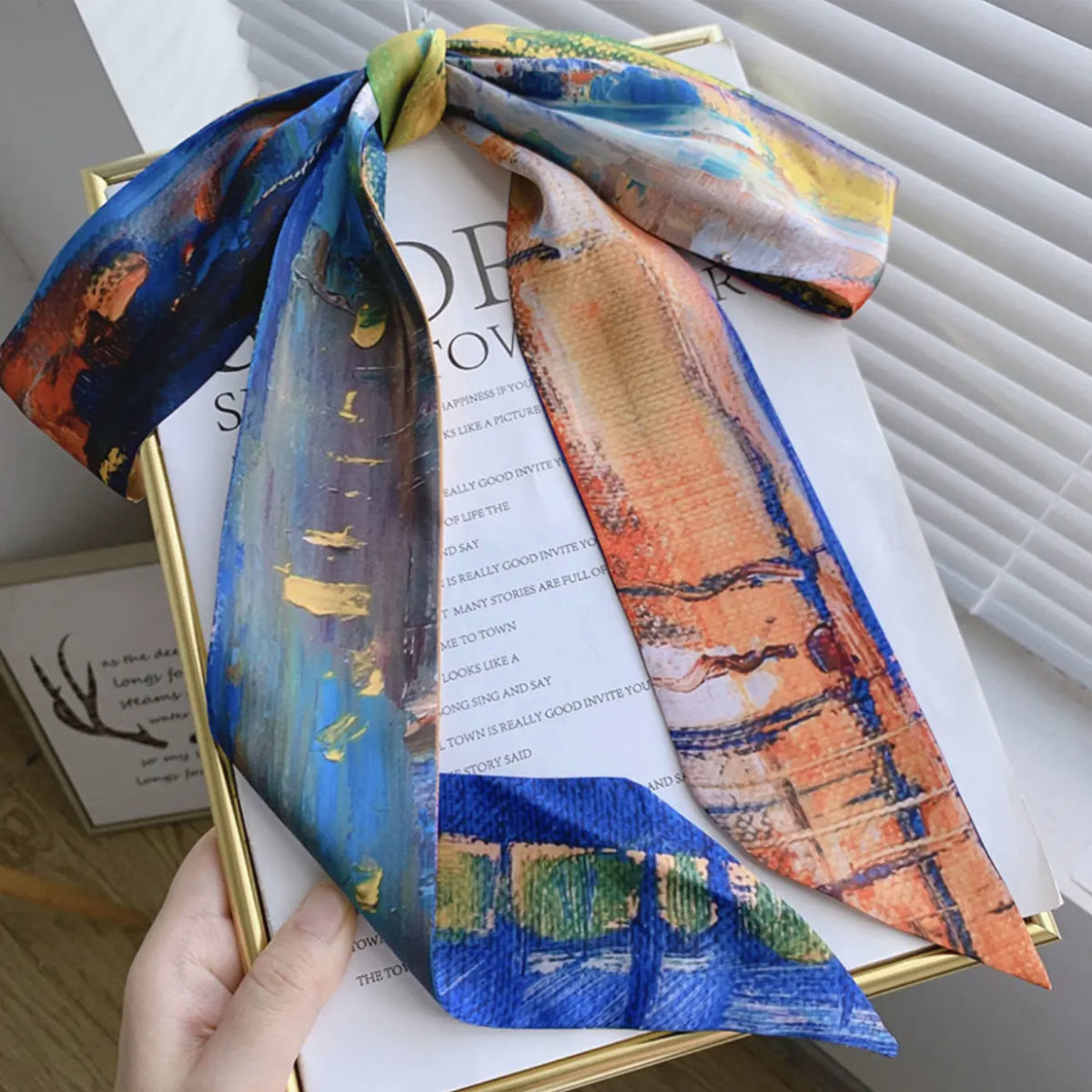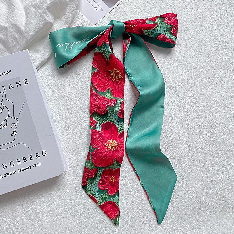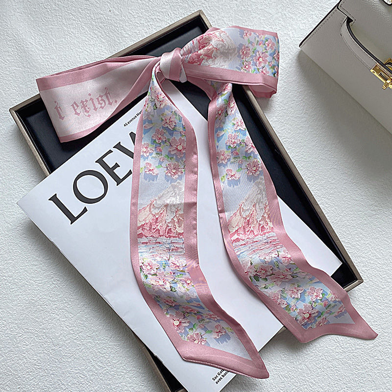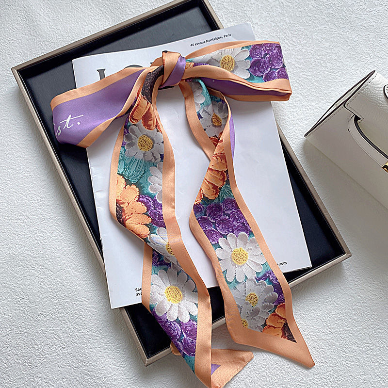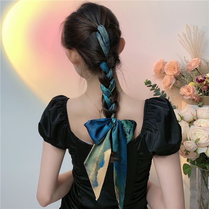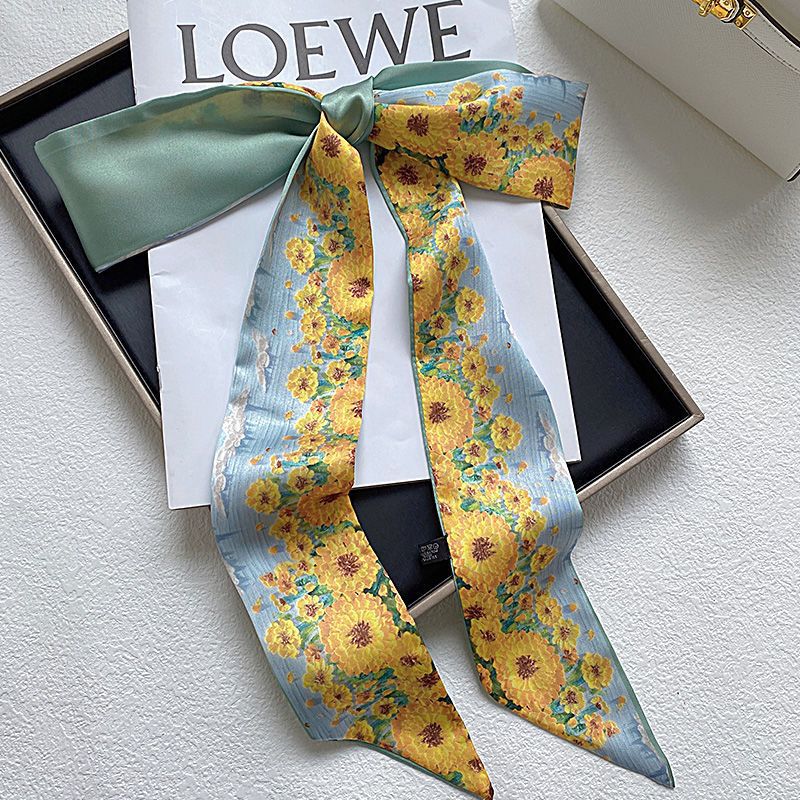 나이트 하버 유화 작은 실크 스카프 여름 모든 매치 프랑스 스타일의 실크 스카프 넥타이 헤어 밴드 여성용 매칭 셔츠 긴 머리 넥타이스토어 가기