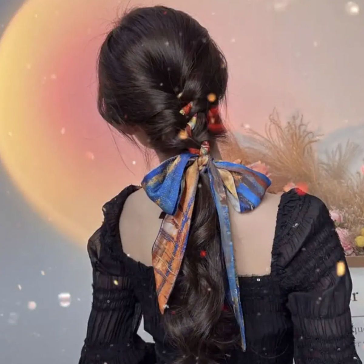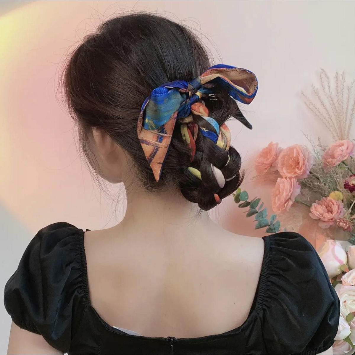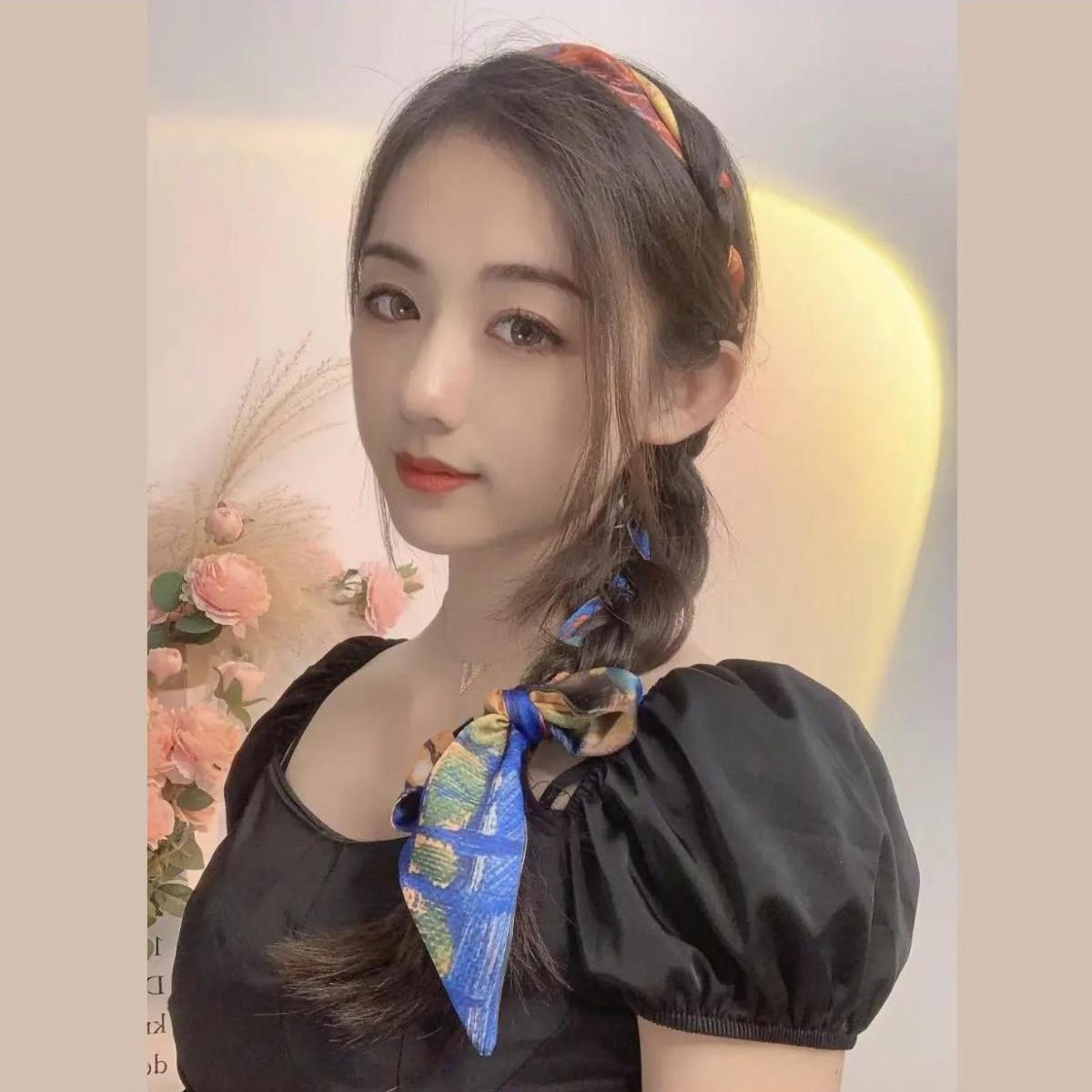 나이트 하버 유화 작은 실크 스카프 여름 모든 매치 프랑스 스타일의 실크 스카프 넥타이 헤어 밴드 여성용 매칭 셔츠 긴 머리 넥타이스토어 가기