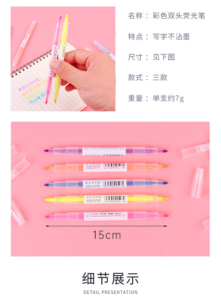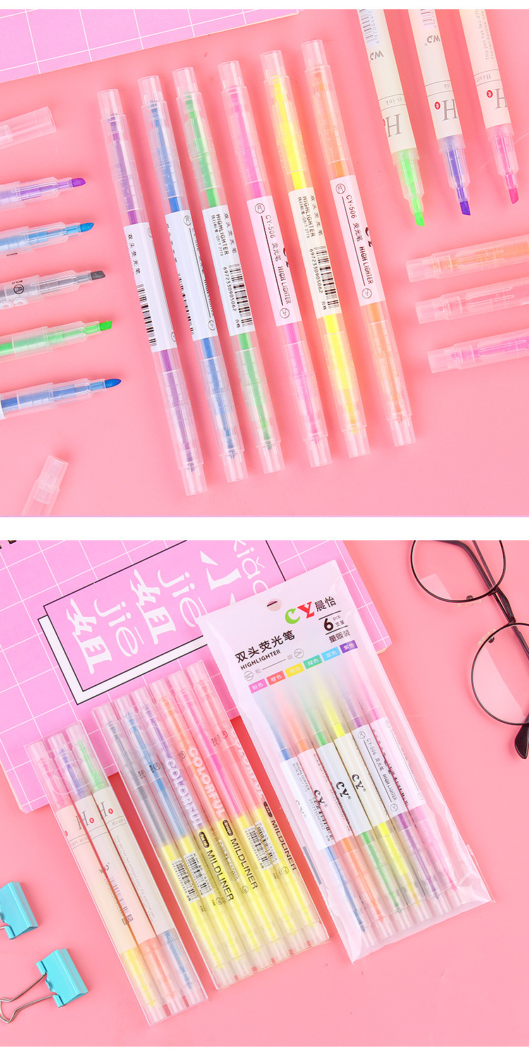 크리에이티브 투헤드 2 색 형광펜 6 팩 학생 문구 학용품 마커 펜 컬러 비스듬한 헤드 마커 펜스토어 가기