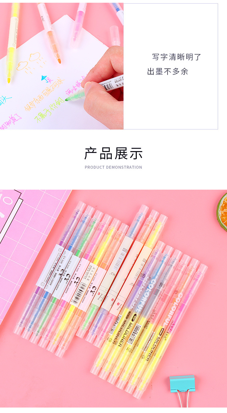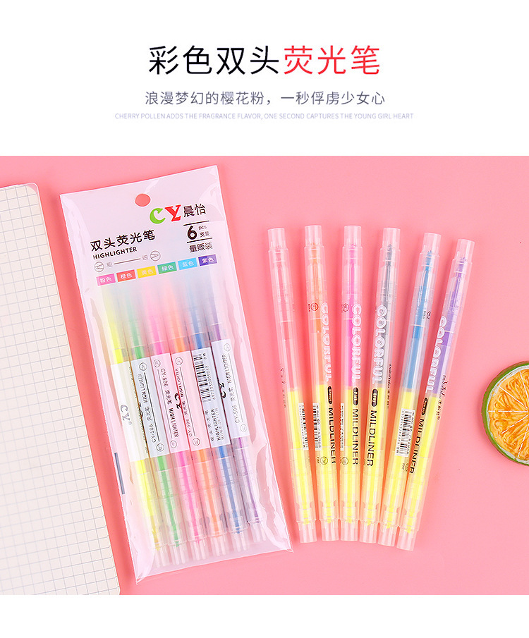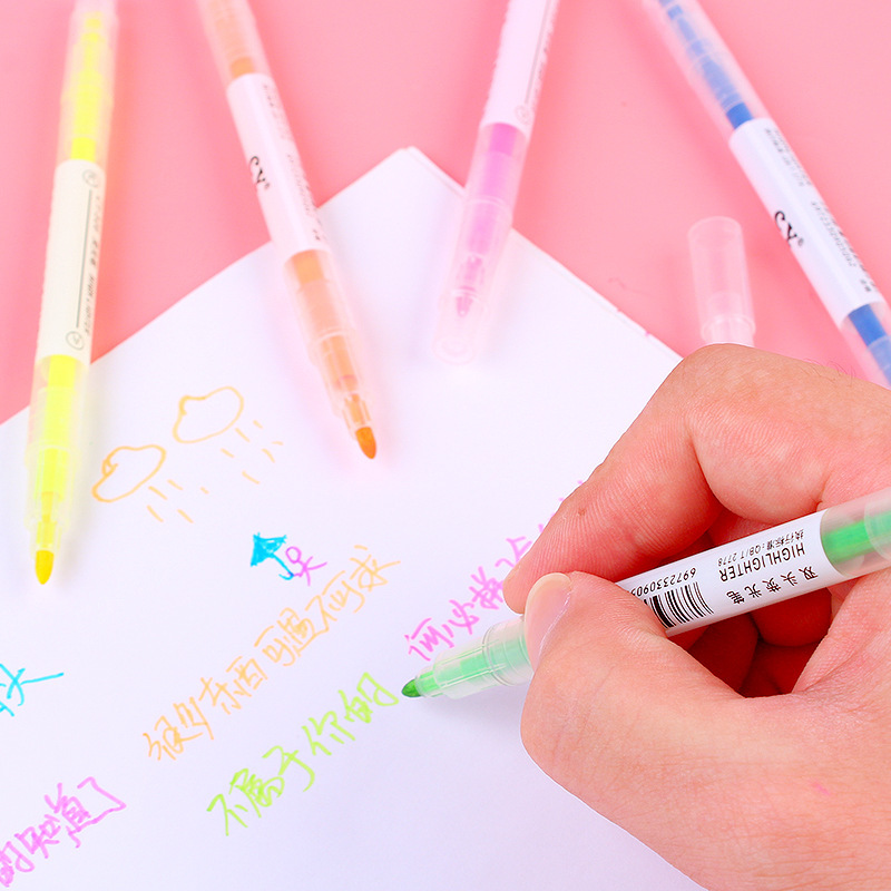 크리에이티브 투헤드 2 색 형광펜 6 팩 학생 문구 학용품 마커 펜 컬러 비스듬한 헤드 마커 펜