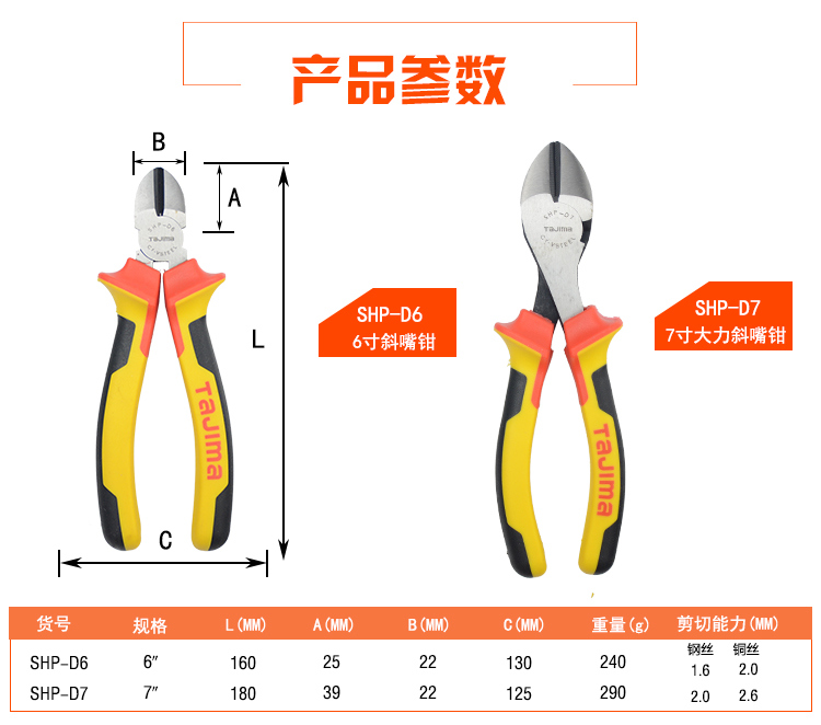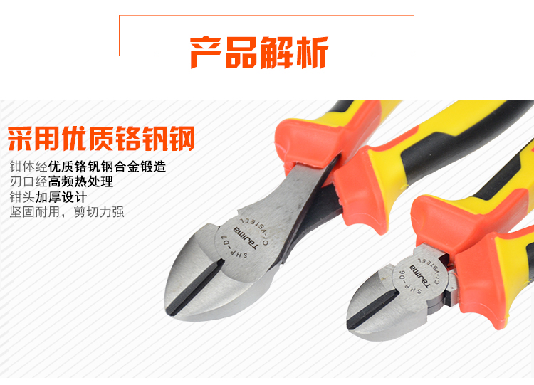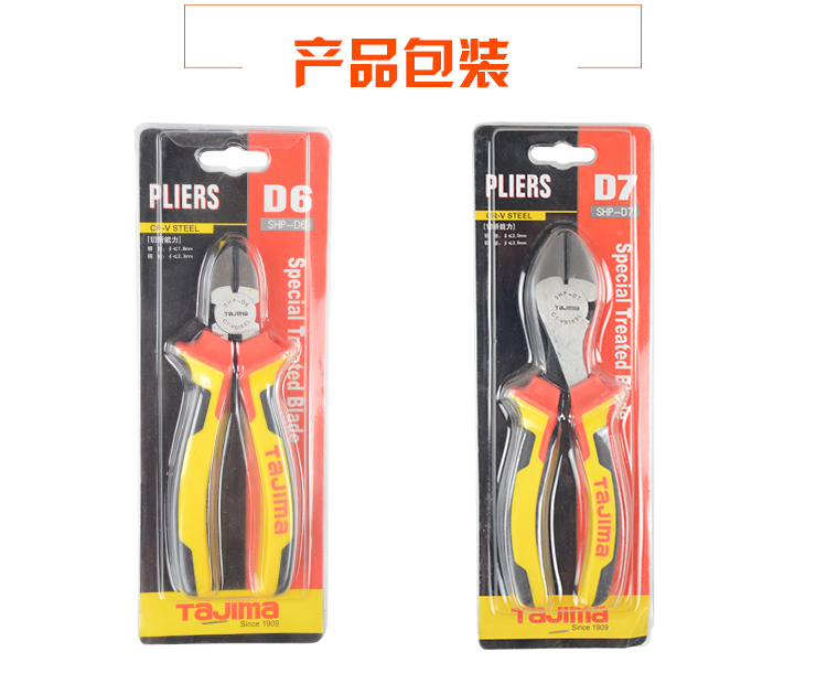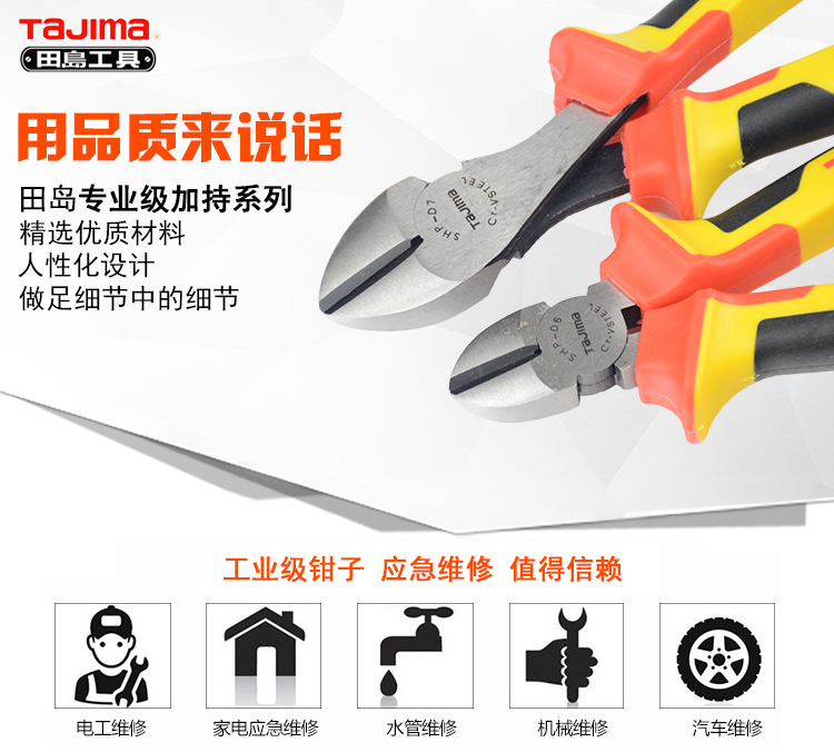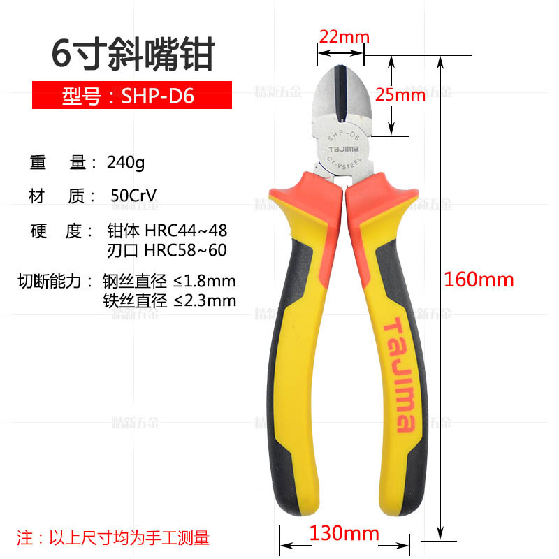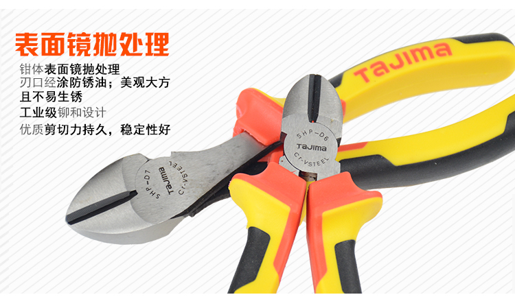 田岛工具高档双色柄斜嘴钳络钒钢CRV正品专业斜口钳6寸7寸斜嘴钳