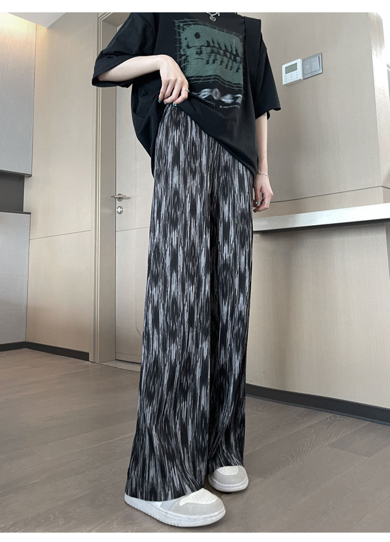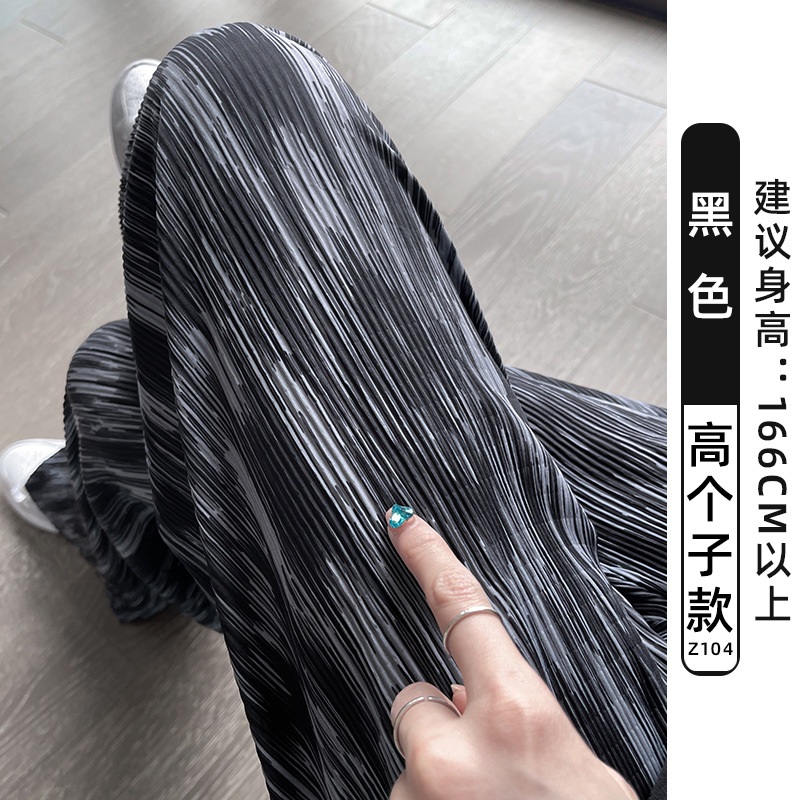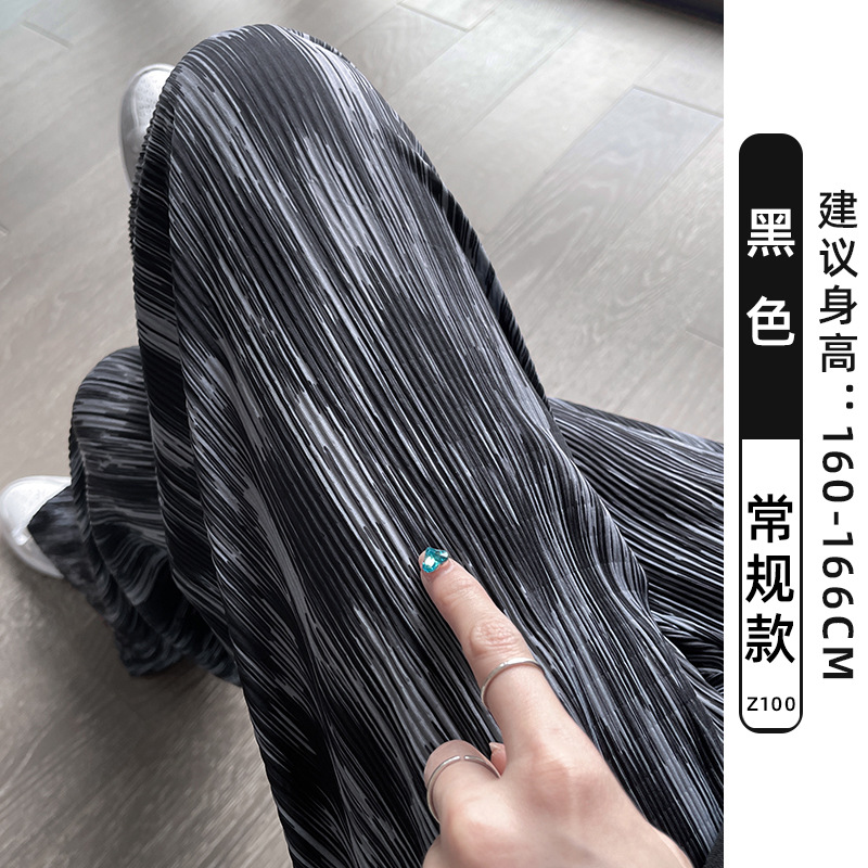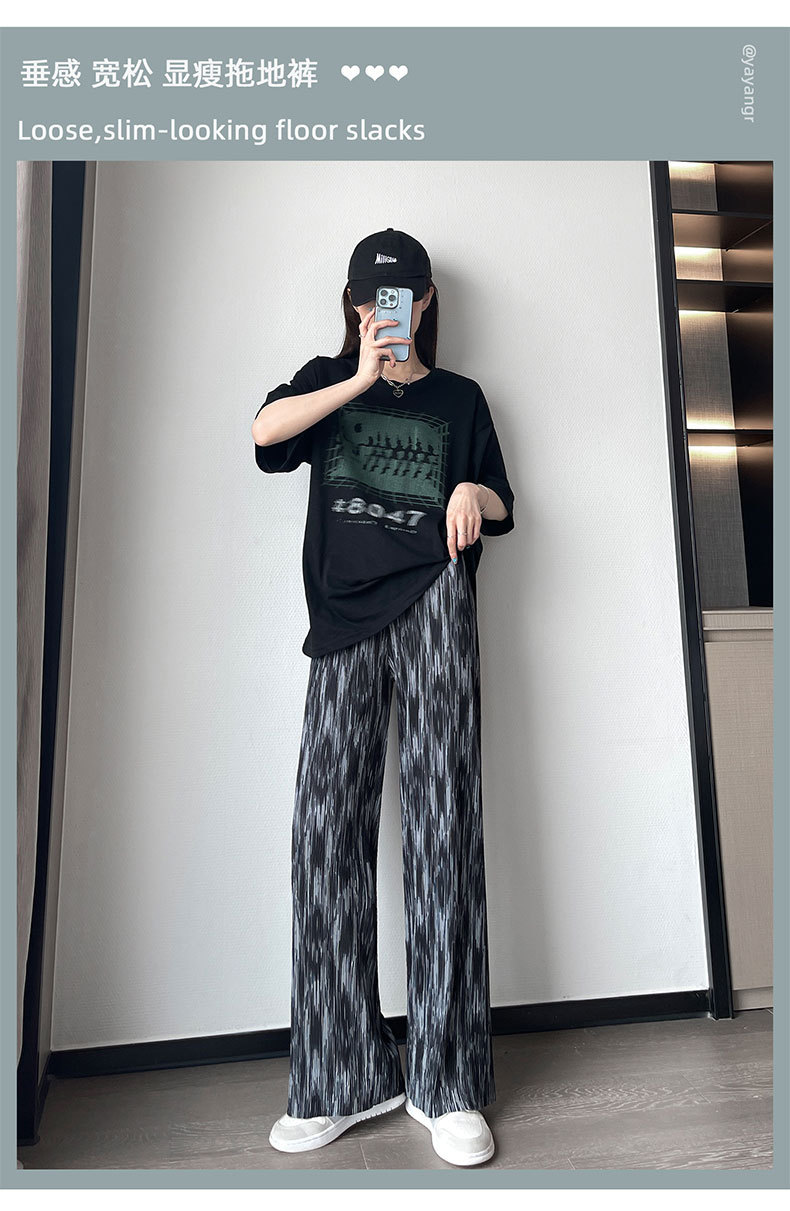 블랙 와이드 레그 팬츠 여성용 바지 여름 얇은 하이 웨이스트 데이프 캐주얼 느슨한 여름 아이스 실크 플로어 스트레이트 팬츠