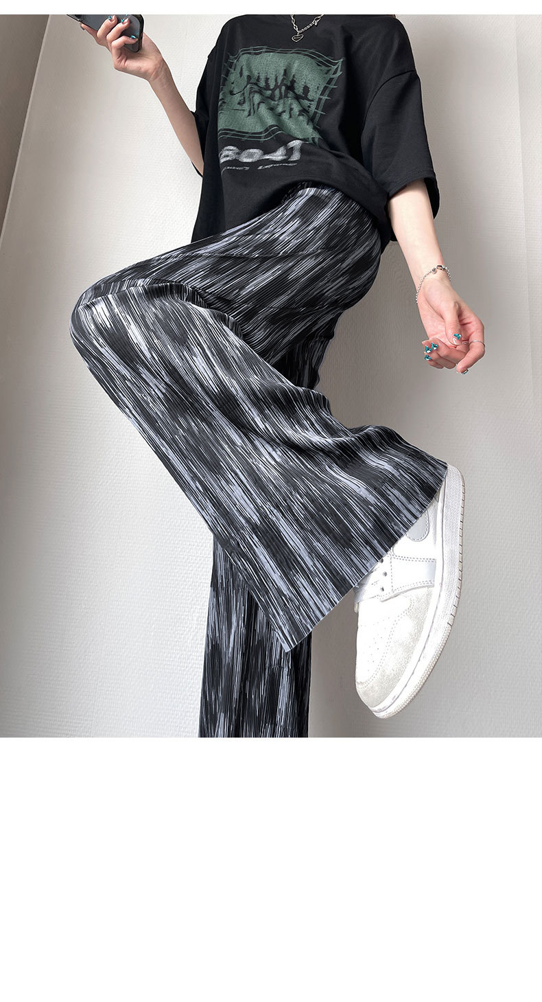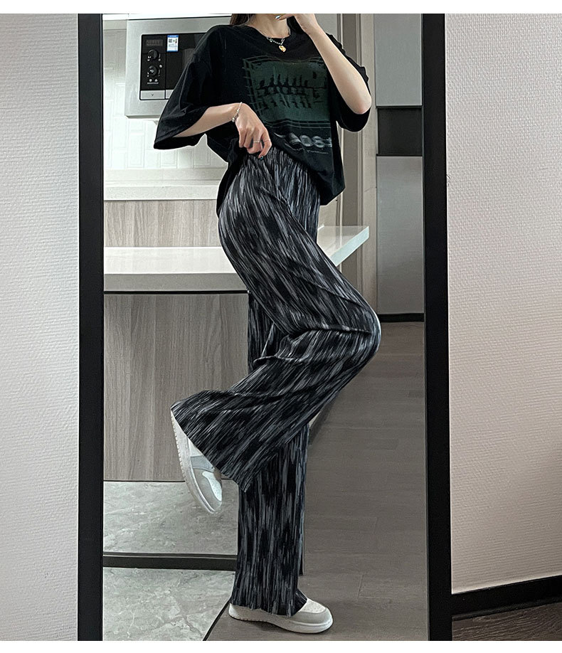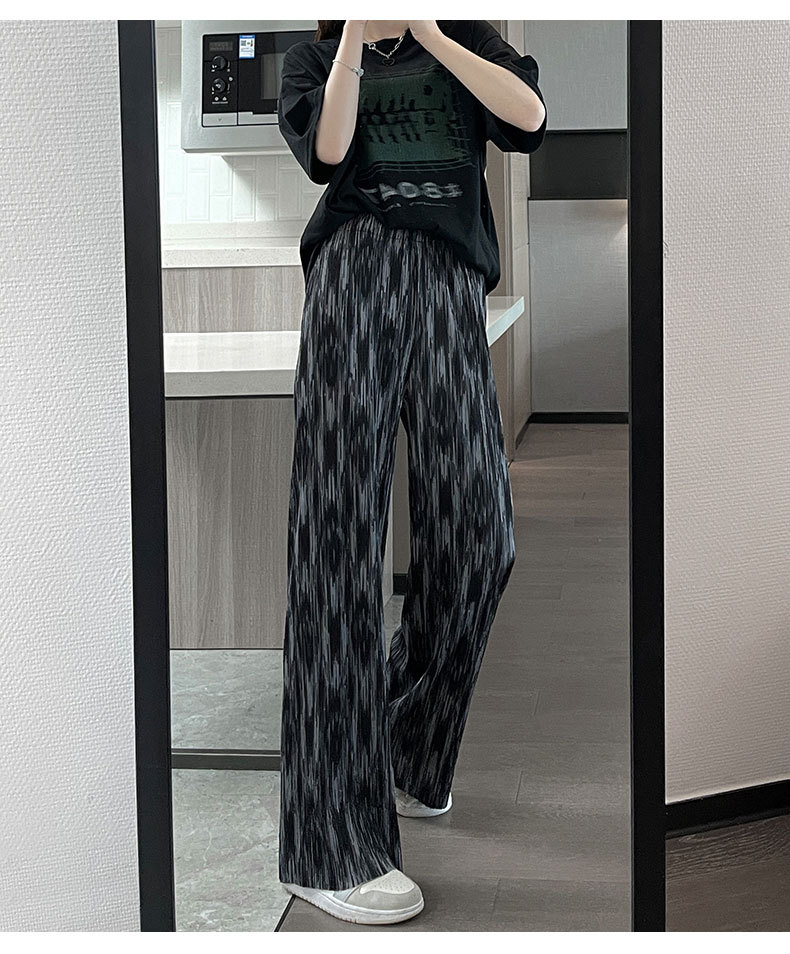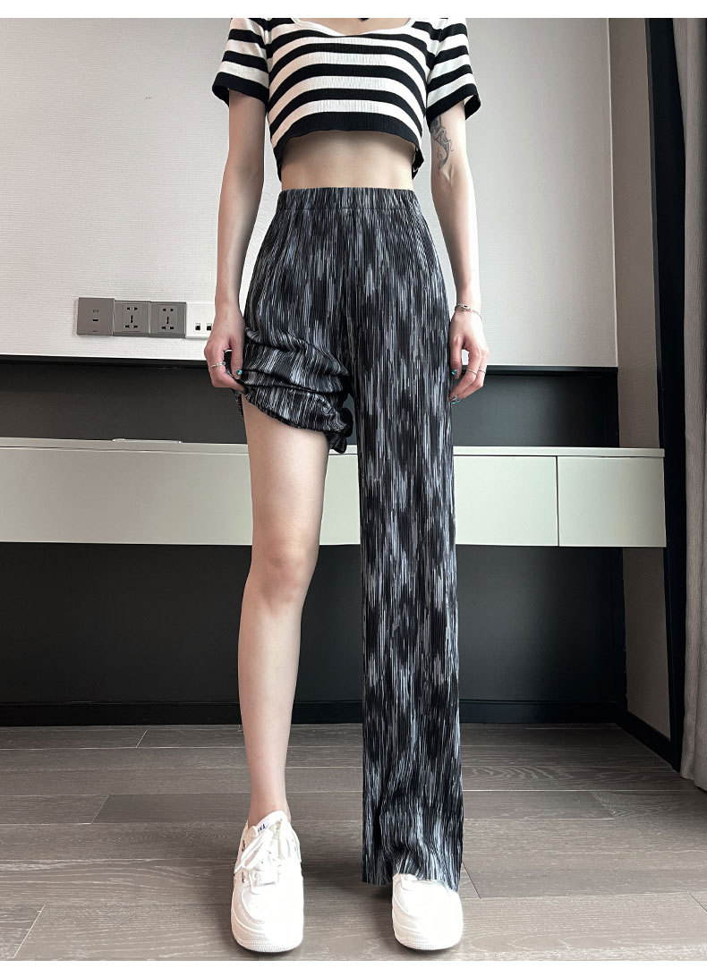 블랙 와이드 레그 팬츠 여성용 바지 여름 얇은 하이 웨이스트 데이프 캐주얼 느슨한 여름 아이스 실크 플로어 스트레이트 팬츠