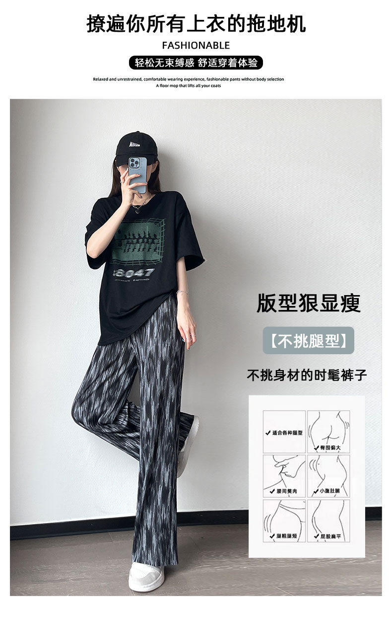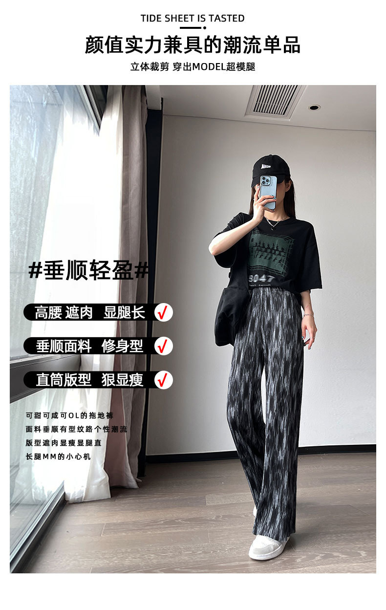 블랙 와이드 레그 팬츠 여성용 바지 여름 얇은 하이 웨이스트 데이프 캐주얼 느슨한 여름 아이스 실크 플로어 스트레이트 팬츠스토어 가기