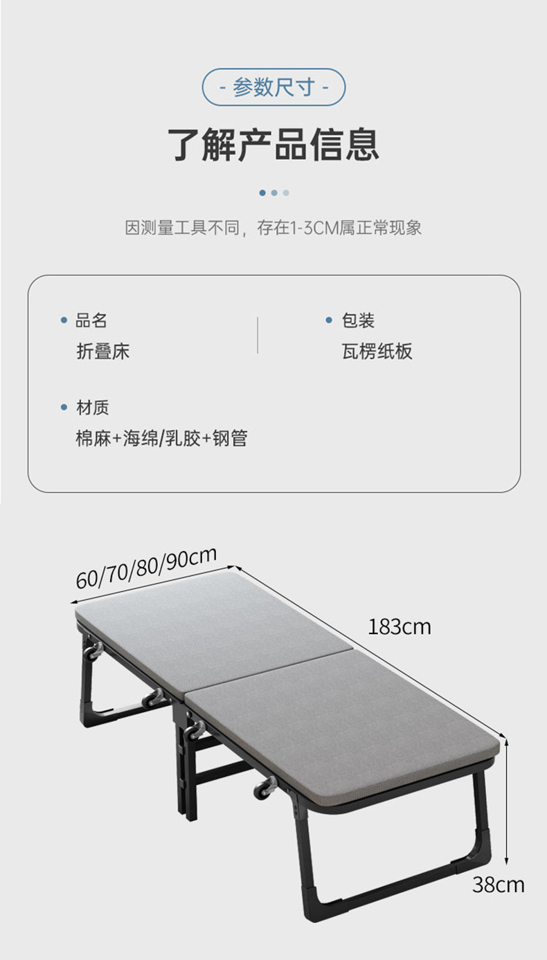 가정용 접이식 침대 사무실 낮잠 침대 휴대용 간이 싱글 침대 병원 간병 침대 도매 라텍스 침대스토어 가기