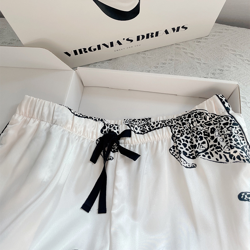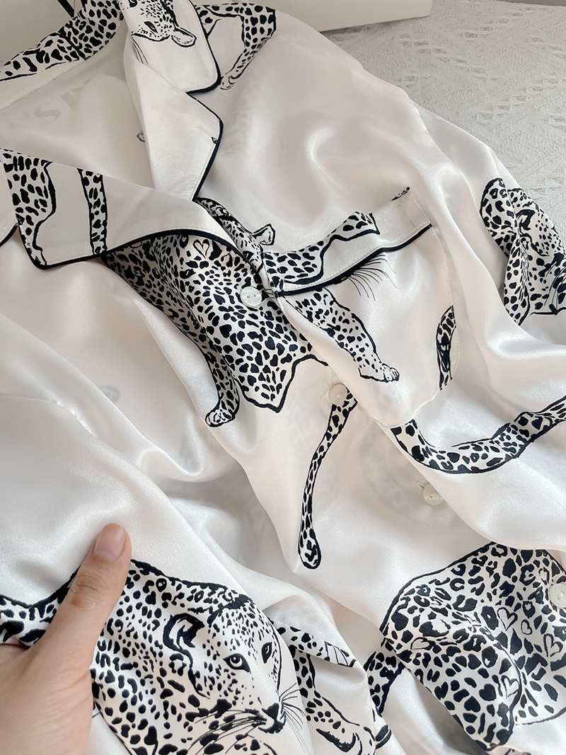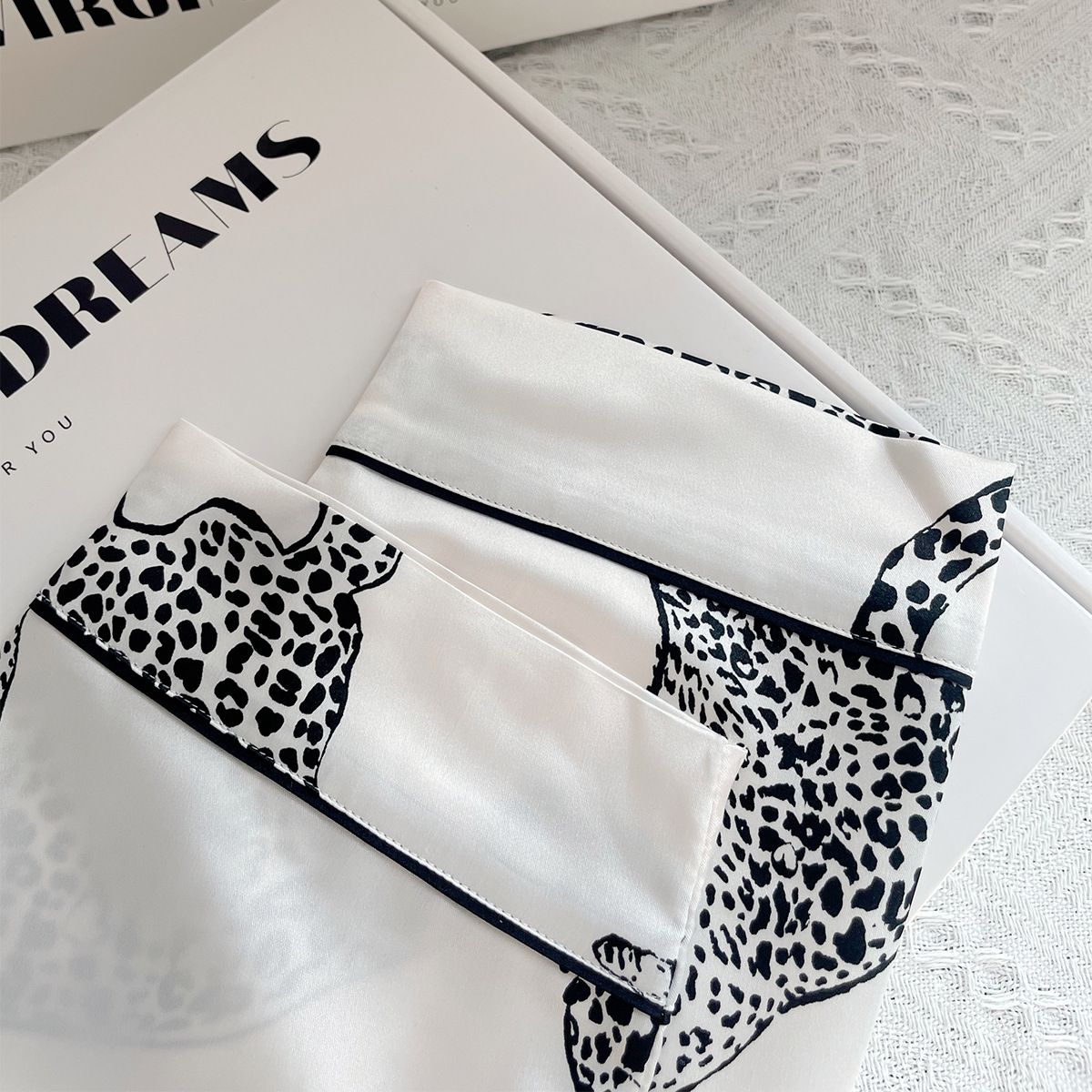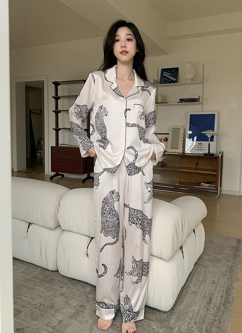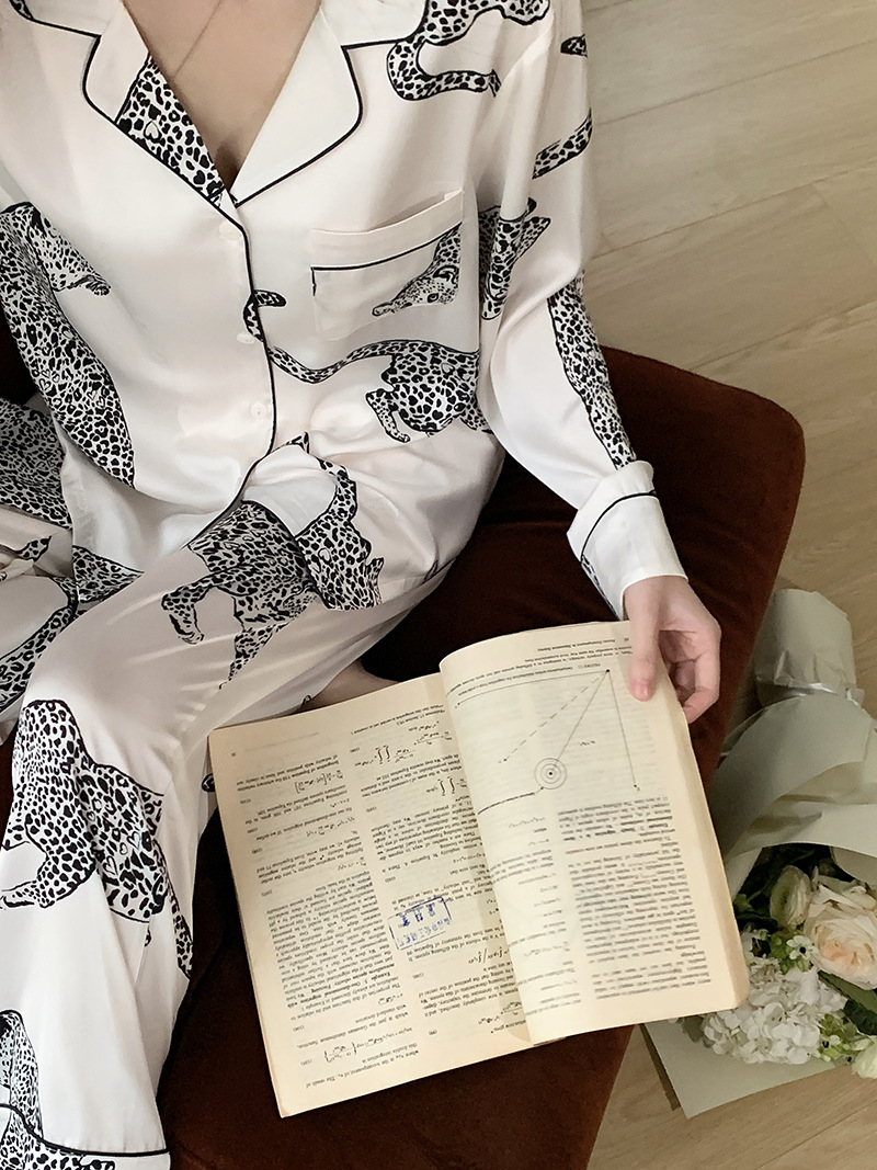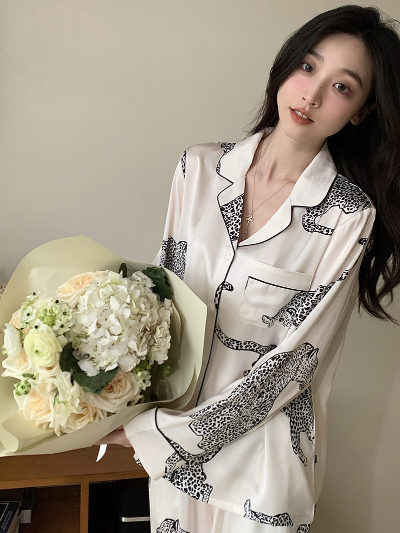 2023 새로운 숙녀 얼음 실크 잠옷 세트 긴 소매 바지 표범 편안한 가정 옷 통기성 봄과 가을