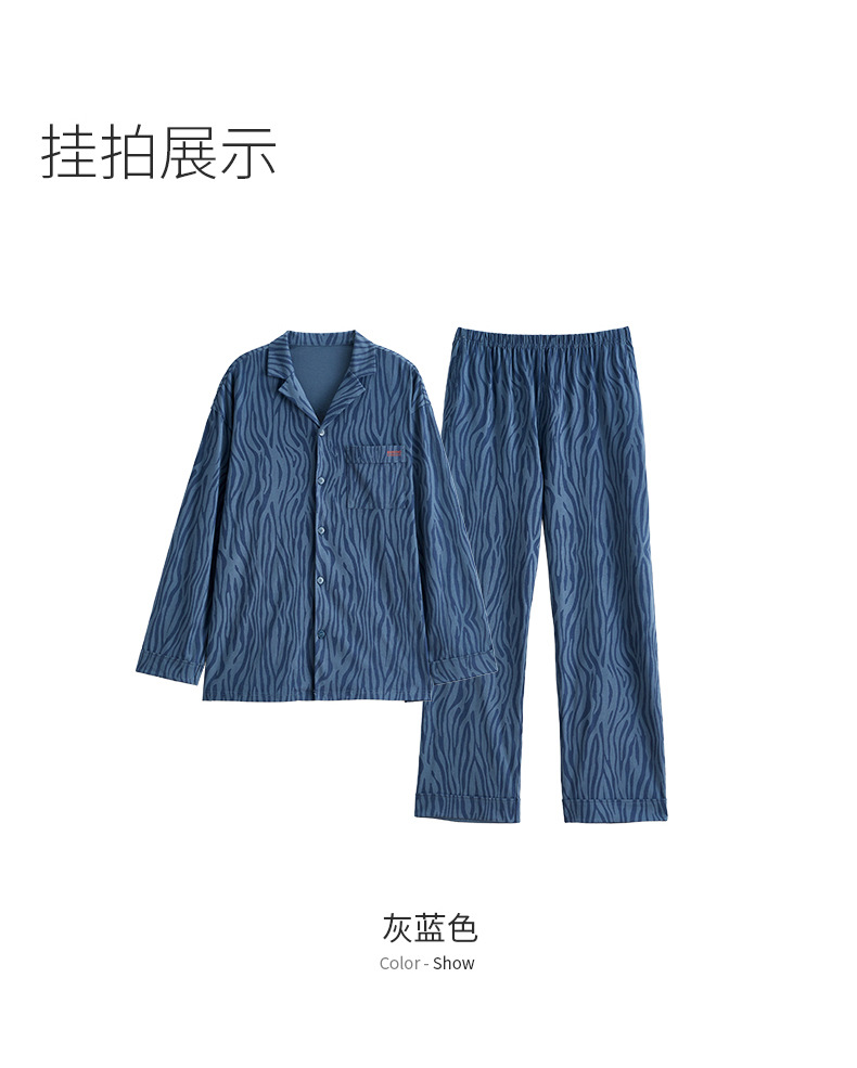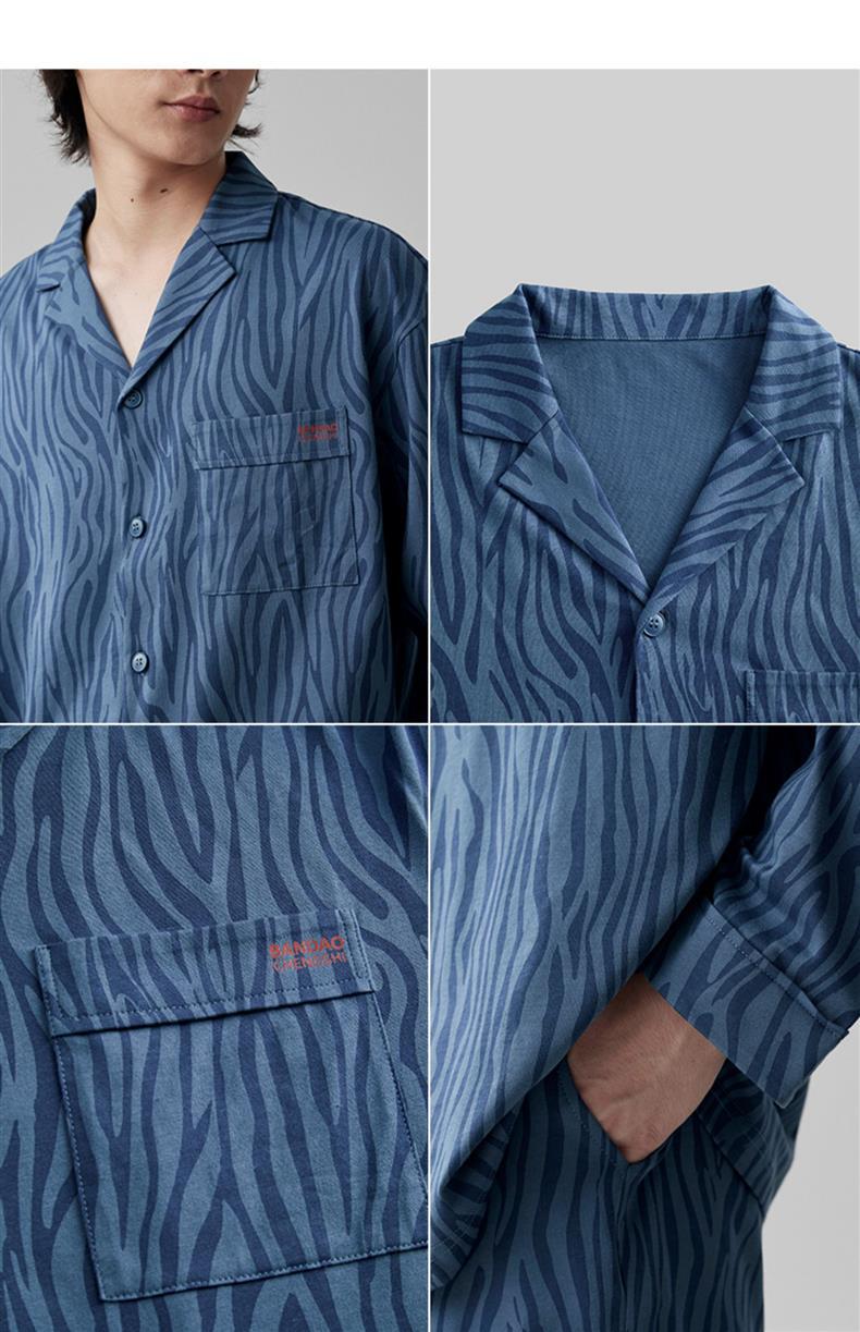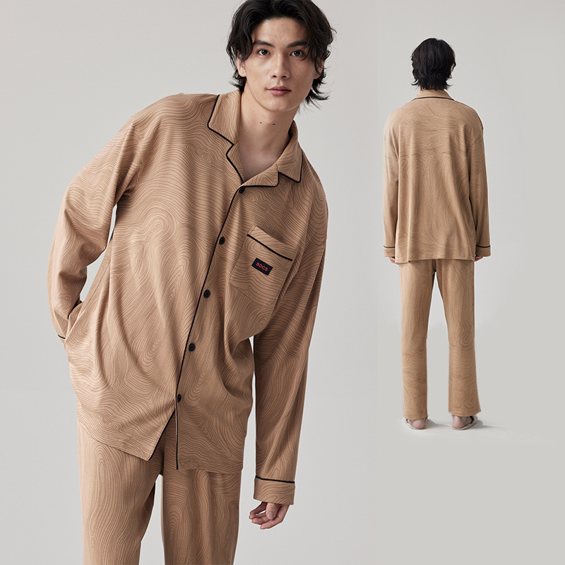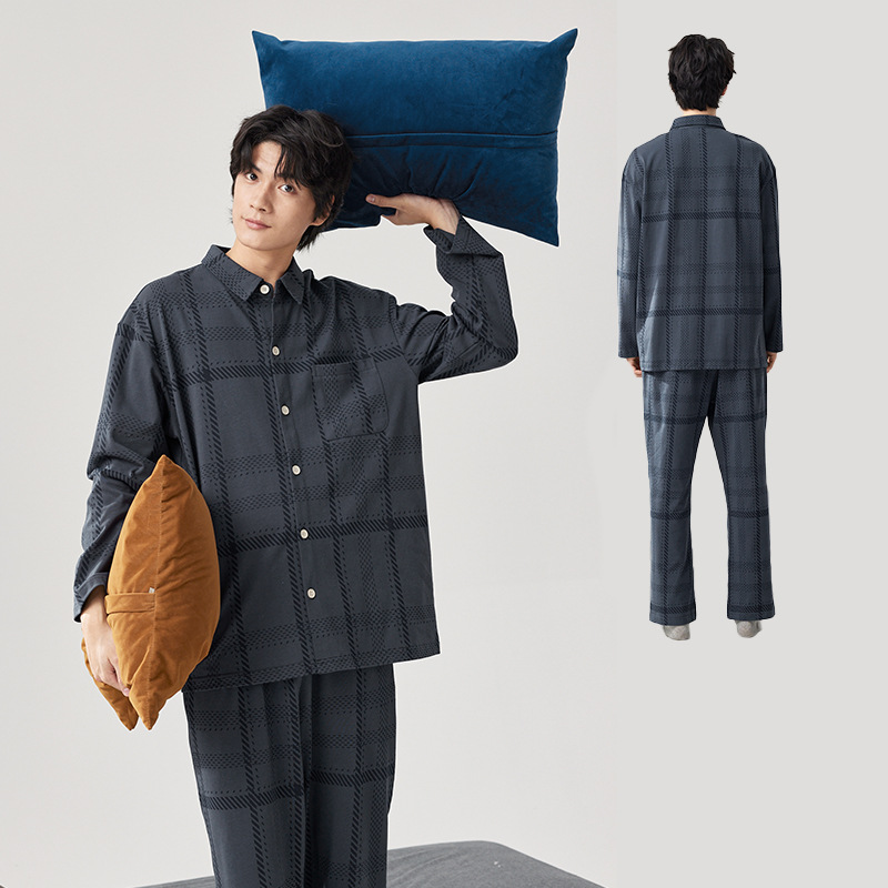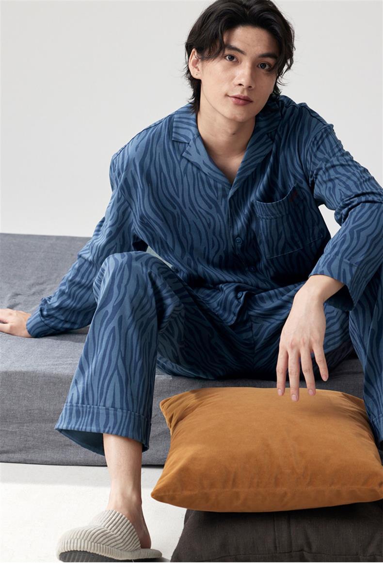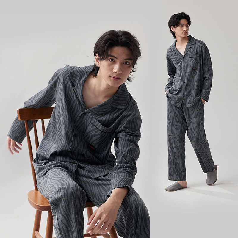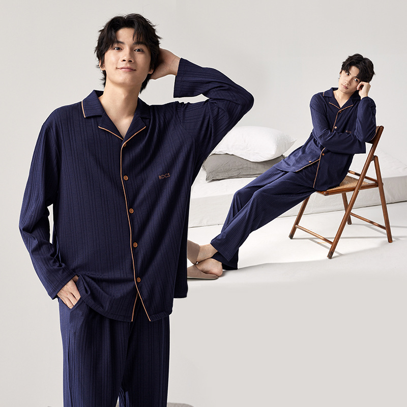 잠옷 남자의 봄과 가을 100% 순면 긴 소매 고급 남자의 여름 얇은 가정 옷 세트스토어 가기