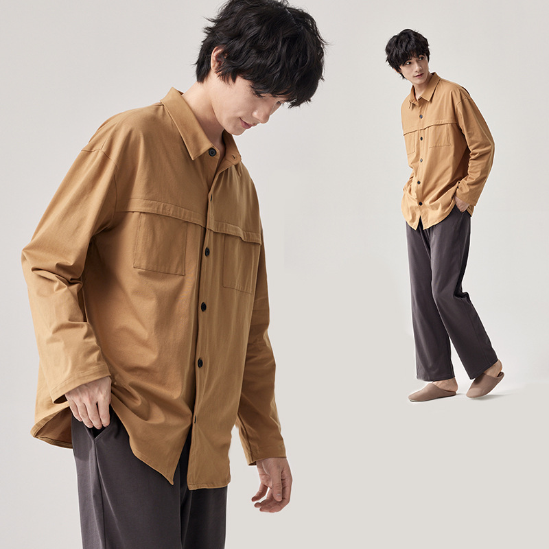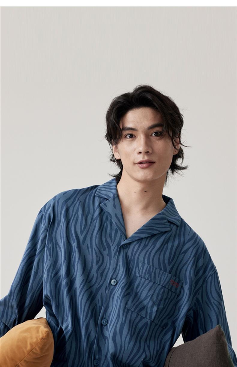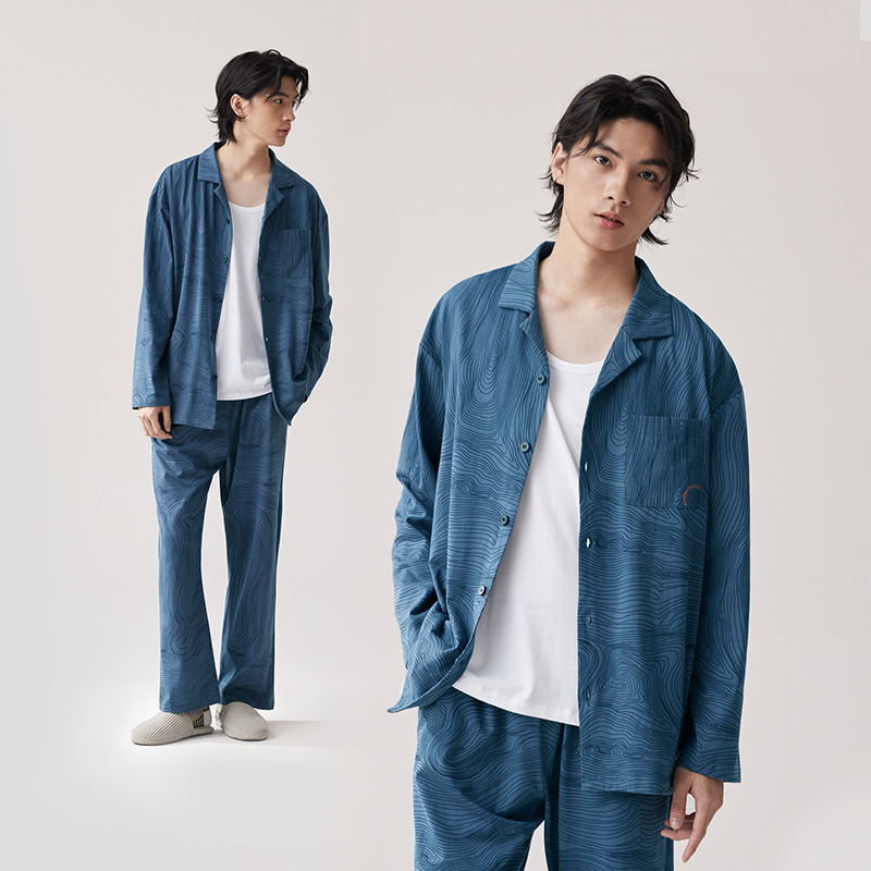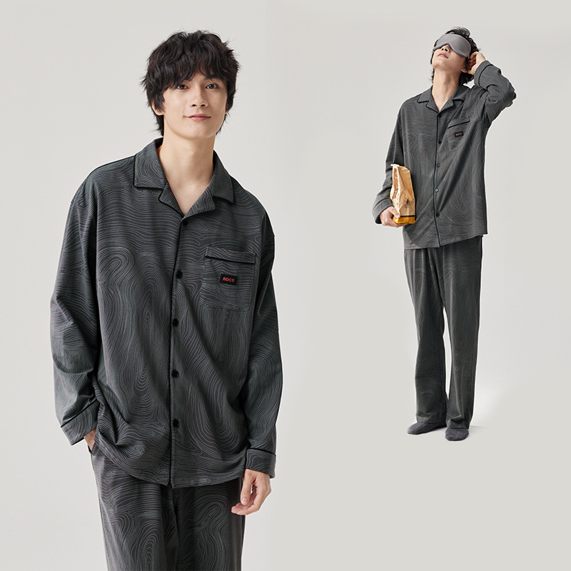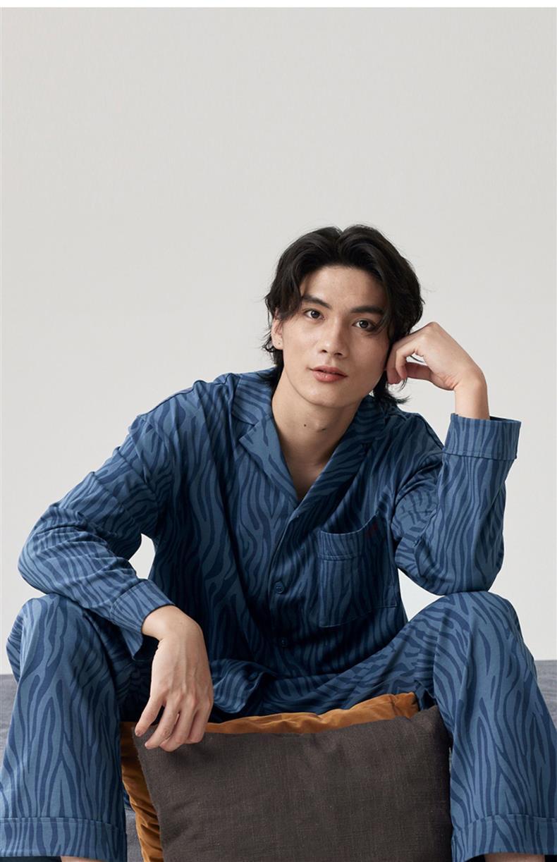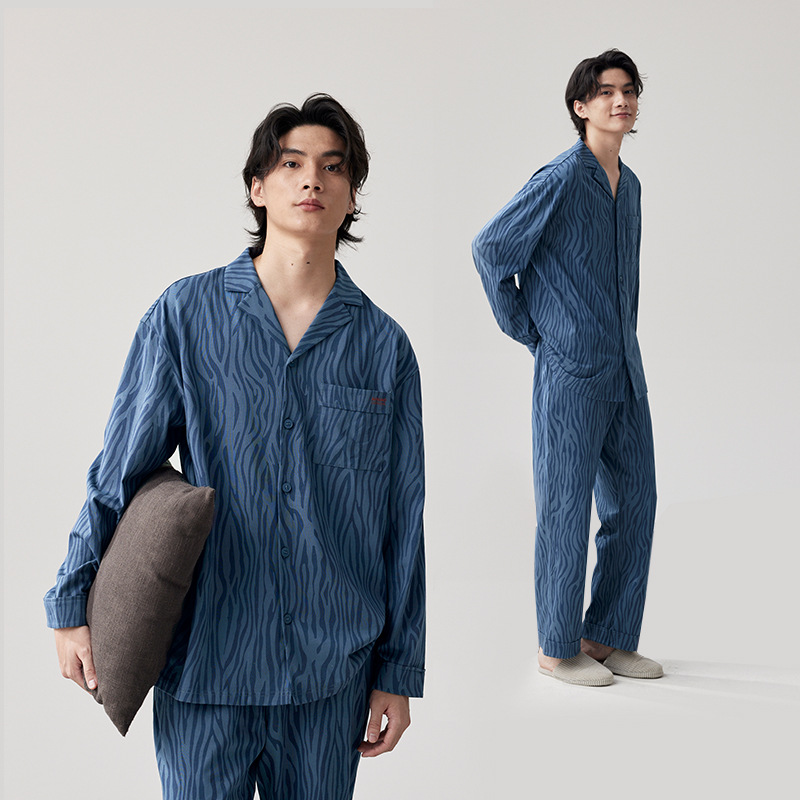 잠옷 남자의 봄과 가을 100% 순면 긴 소매 고급 남자의 여름 얇은 가정 옷 세트스토어 가기