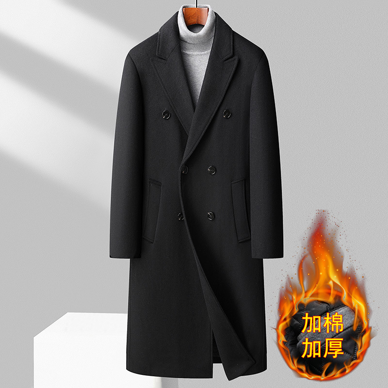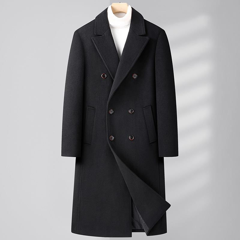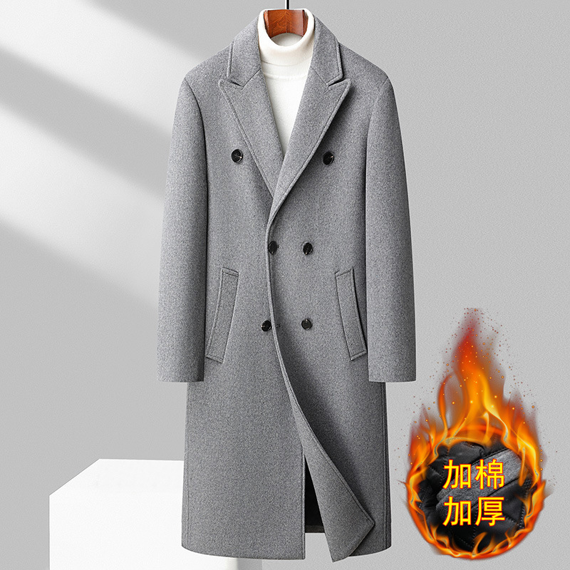 가을과 겨울 새로운 남성 모직 코트 윈드 브레이커 더블 브레스트 롱 오버 더 니 한국 스타일 슬림핏 모직 코트 남성 코트스토어 가기